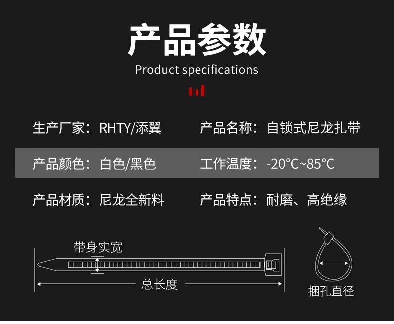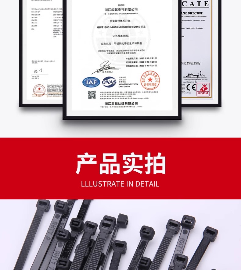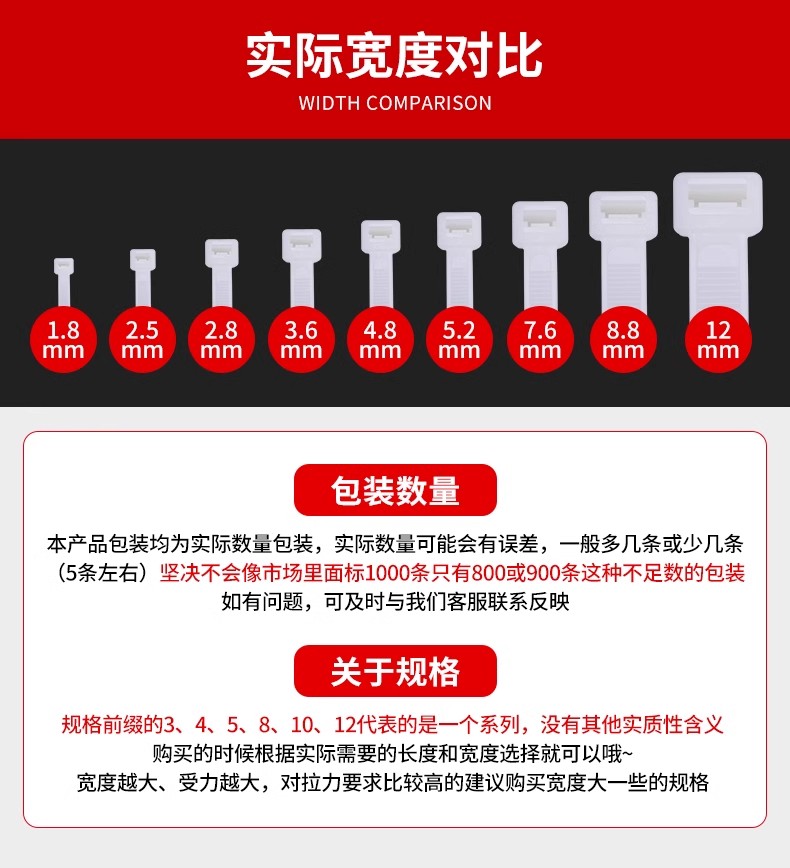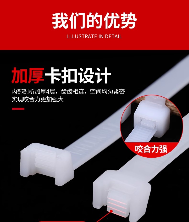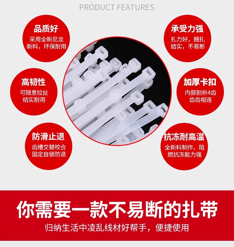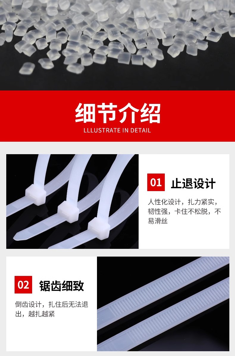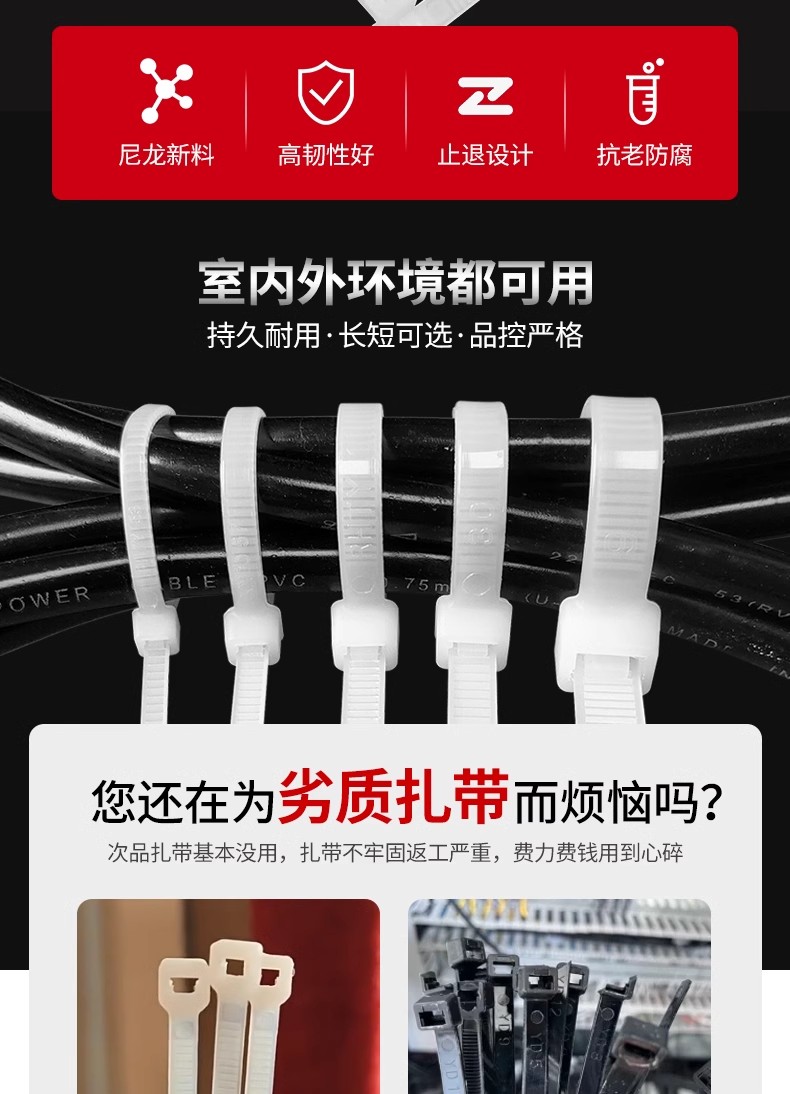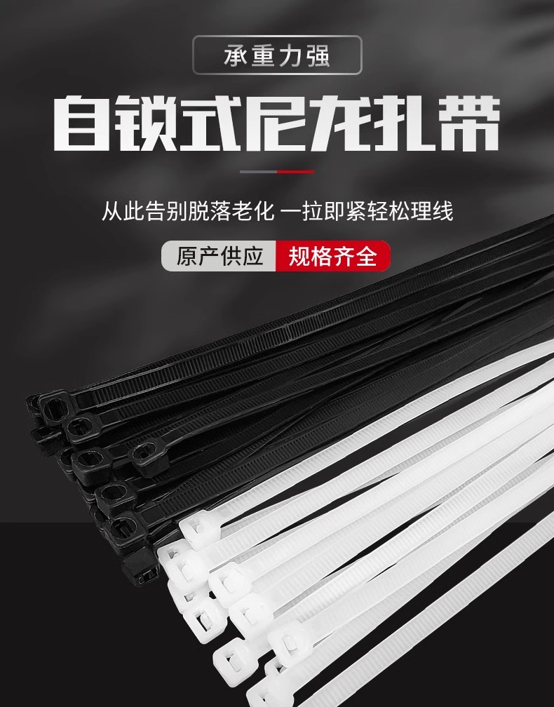 Fábrica al por mayor de un gran número de nylon cable tie hebilla fuerte autobloqueo de plástico blanco y negro de unión tira de la atadura de cables