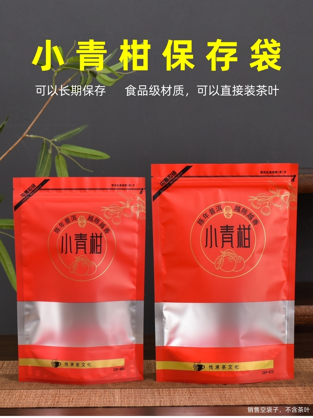 | Color | Bolsas de naranja verde (bolsas vacías sin té), bolsas de naranja rojas (bolsas vacías sin té) |