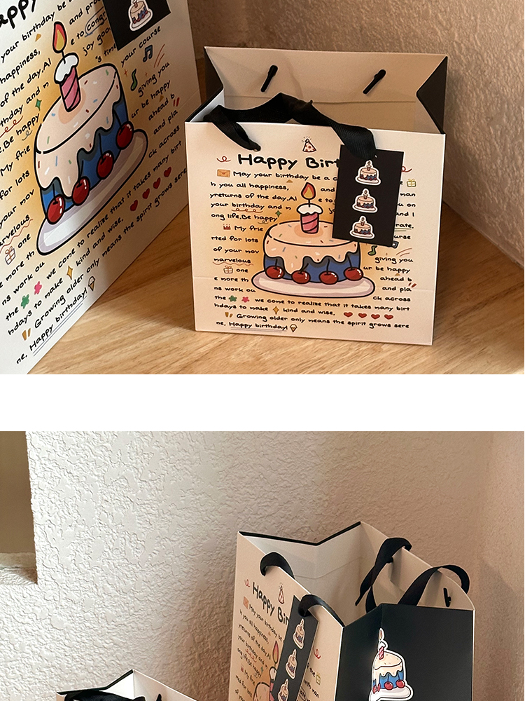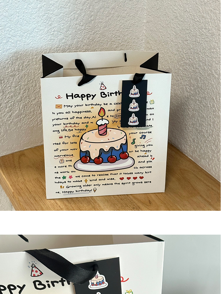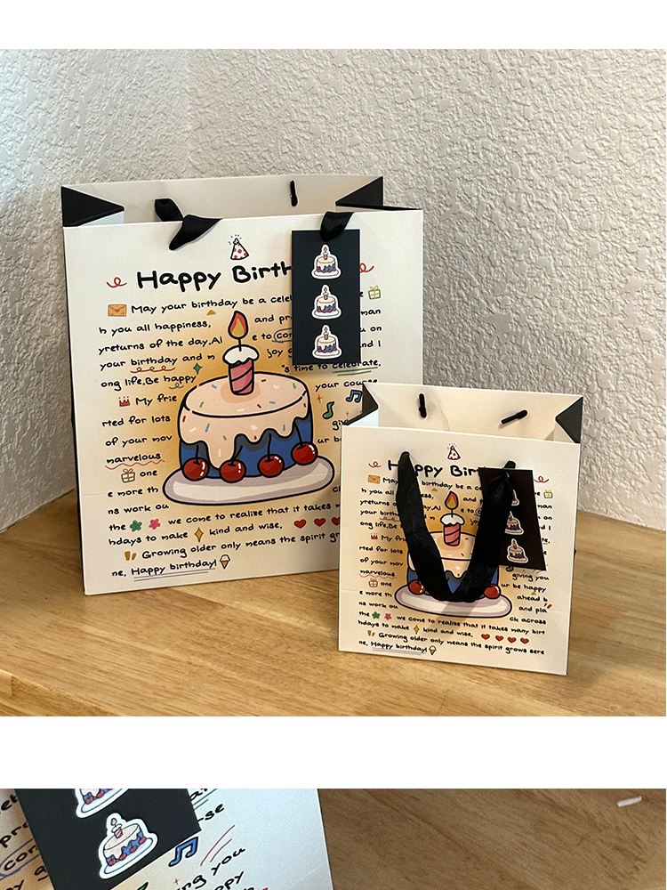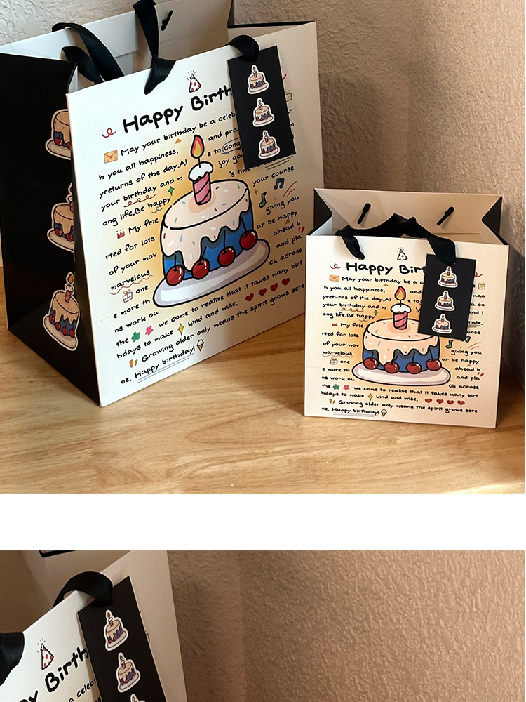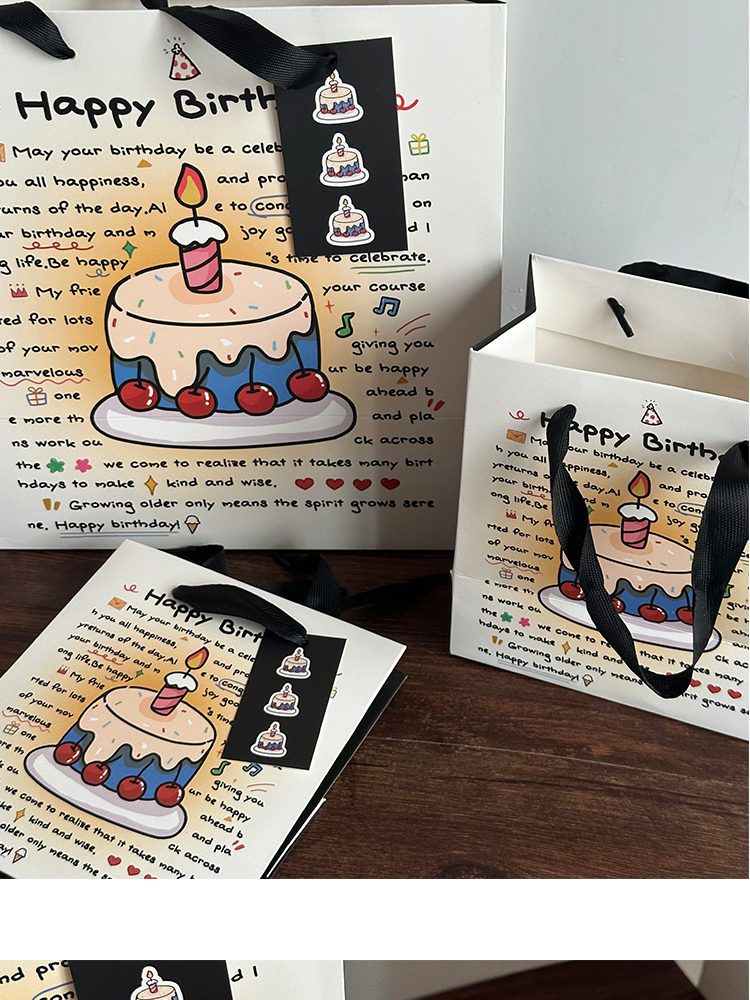 Ins bolsas de regalo de pastel de cumpleaños, bolsas de regalo grandes, bolsas de papel de mano, bolsas de almacenamiento de tarjetas blancas gruesas con tarjetas
