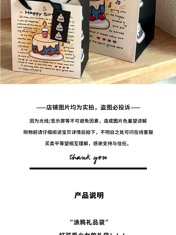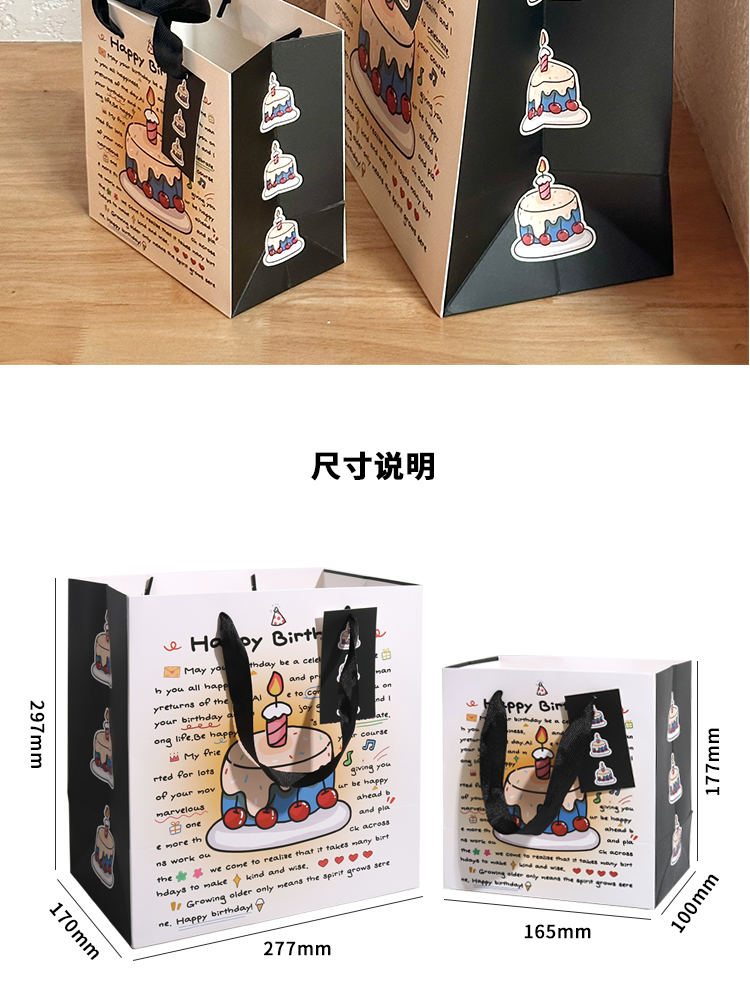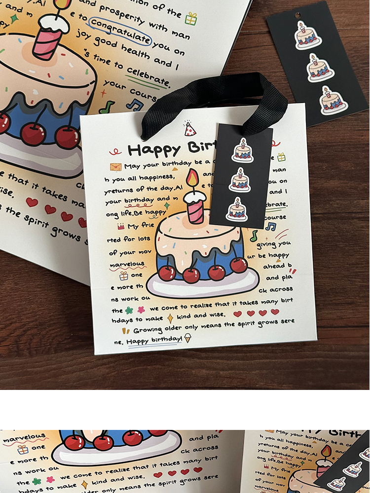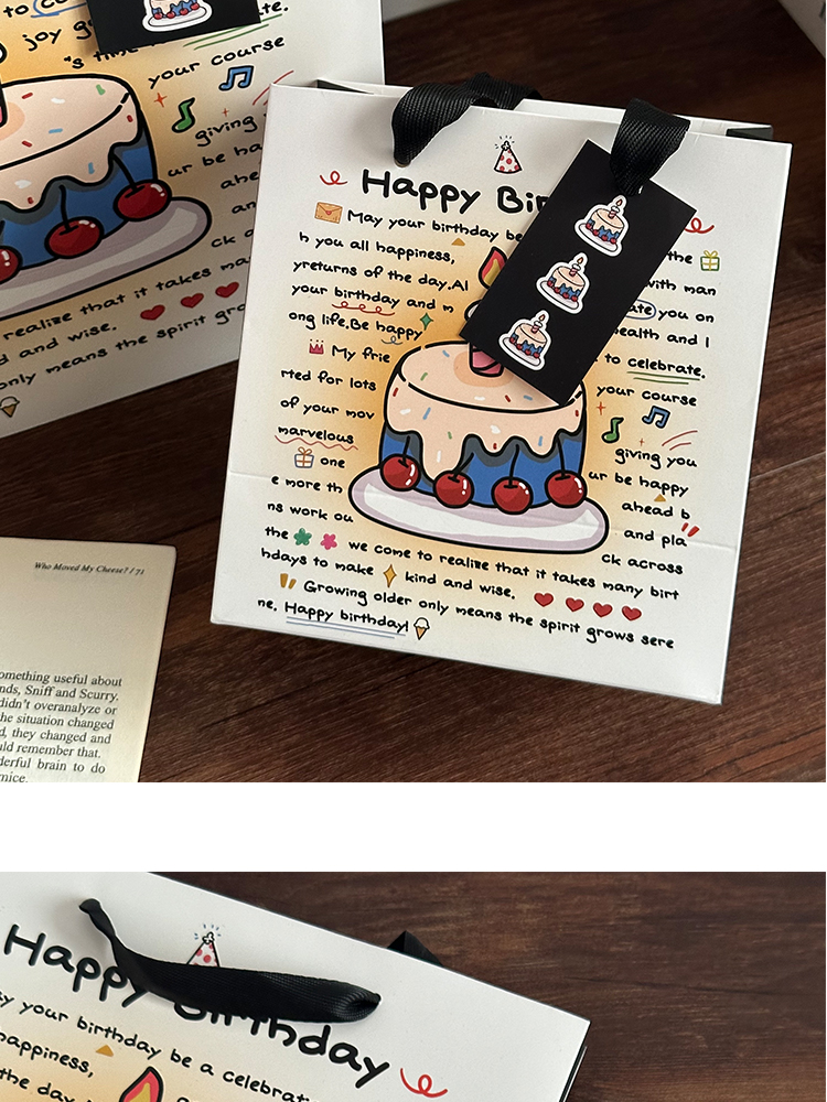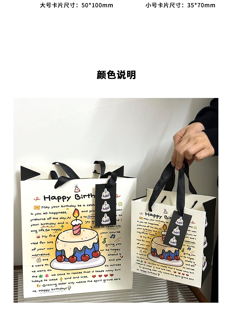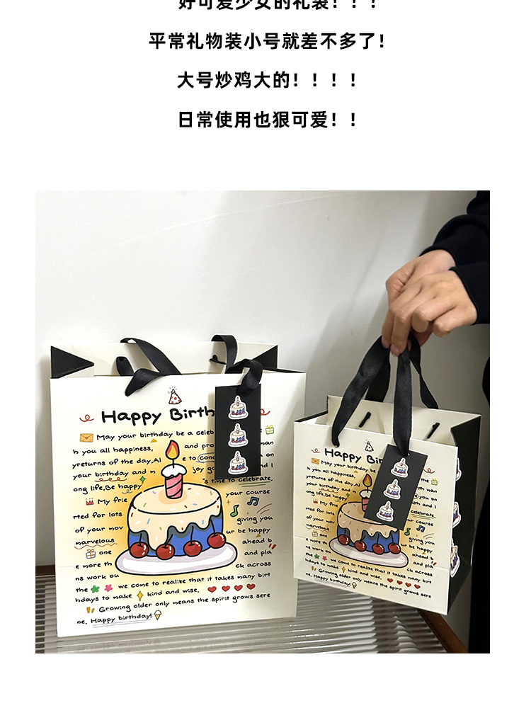 Ins bolsas de regalo de pastel de cumpleaños, bolsas de regalo grandes, bolsas de papel de mano, bolsas de almacenamiento de tarjetas blancas gruesas con tarjetas