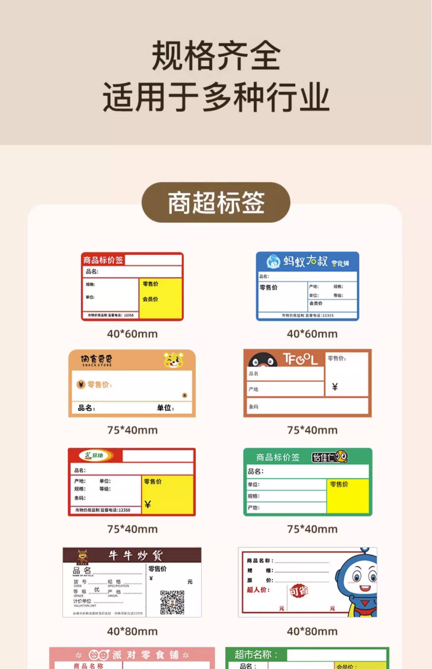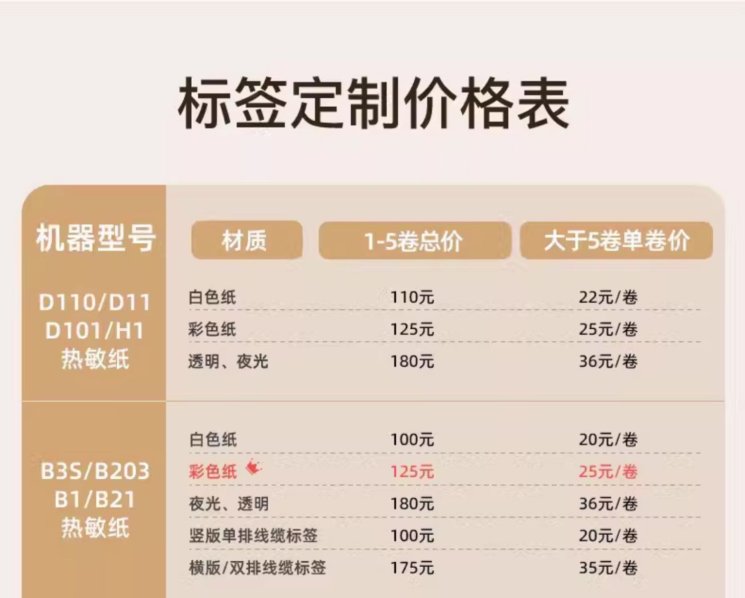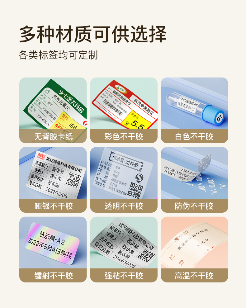 | Especificaciones y modelos | Serie B [etiqueta de color], Serie B [etiqueta blanca], Serie B [etiqueta transparente / luminosa], Serie B [etiqueta de cable de una sola fila], Serie B [etiqueta de cable de doble fila / horizontal], Serie D [etiqueta de color], Serie D [etiqueta blanca], Serie D [etiqueta transparente / luminosa], B18 [etiqueta blanca / plateada / transparente], B18 [etiqueta de color], B18 [etiqueta de impresión / alta temperatura / luminosa / anti-falsificación], B18 [etiqueta de nitrógeno líquido], K3 [etiqueta blanca], K3 [etiqueta de color]| Cable| Etiqueta de joyería], K3 [etiqueta transparente], M2 [color], M2 [PVC blanco / PET blanco brillante / transparente / plata mate en blanco], M2 [cable de fila única], M2 [cable de fila doble], M2 [etiqueta de nitrógeno líquido], M2 [etiqueta de baja temperatura], B32 / Z401 [papel PP blanco], B32 / Z401 [papel PP de color], B32 / Z401 [material PET de color], T2 / T2S [papel de bronceado blanco no recubierto de 80 mm], T2 / T2S [papel de cobre no recubierto de color interno de 80 mm], T2 / T2S [papel de cobre recubierto de color interno de 80 mm], T2 / T2S [papel de cobre recubierto de color interno de 80 mm], T2 / T2S [papel de cobre recubierto de color interno de 110 mm], T2 / T2S [papel de cobre recubierto de color interno de 110 mm], T2 / T2S [papel de cobre recubierto de color interno de 110 mm] |