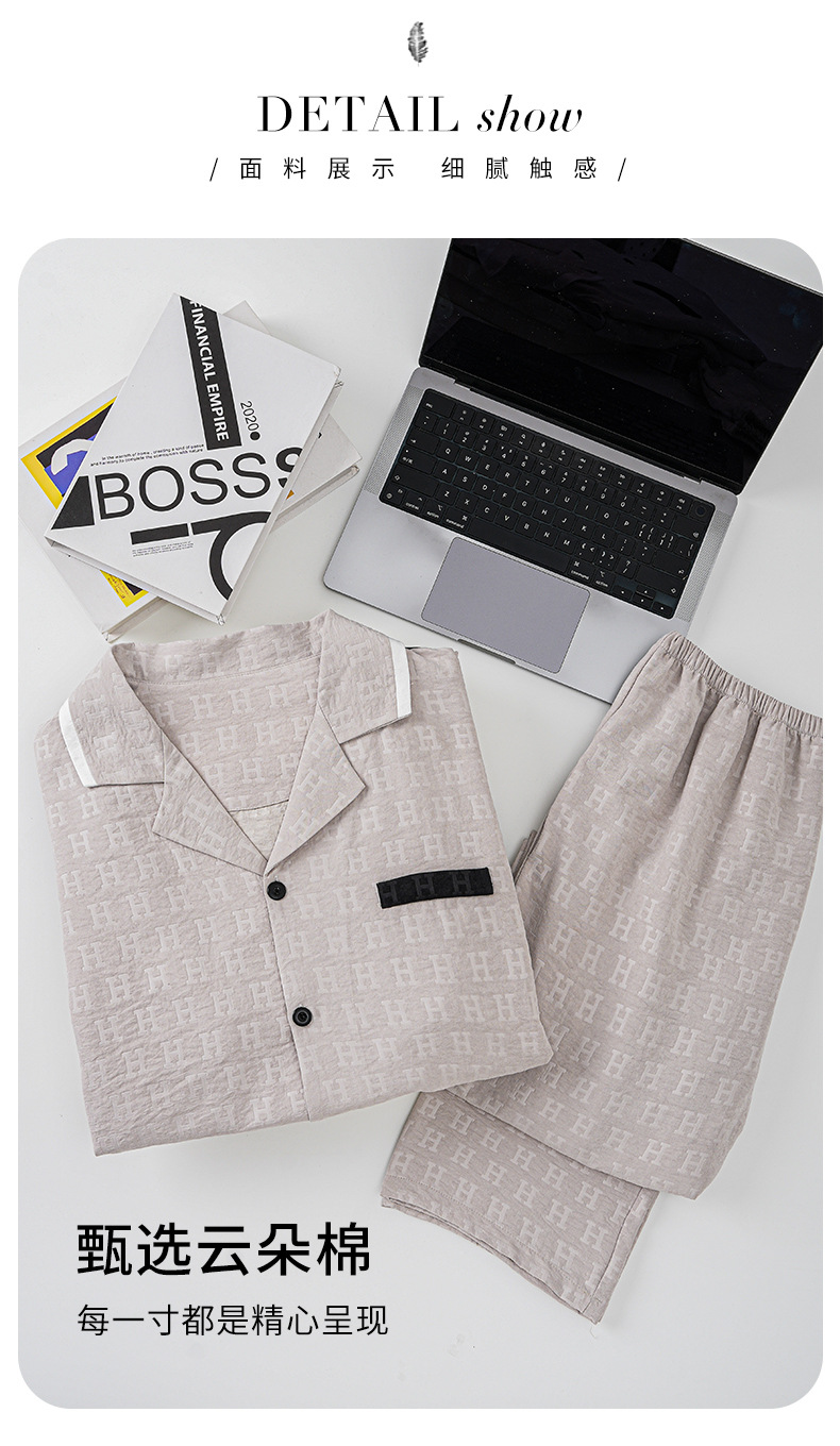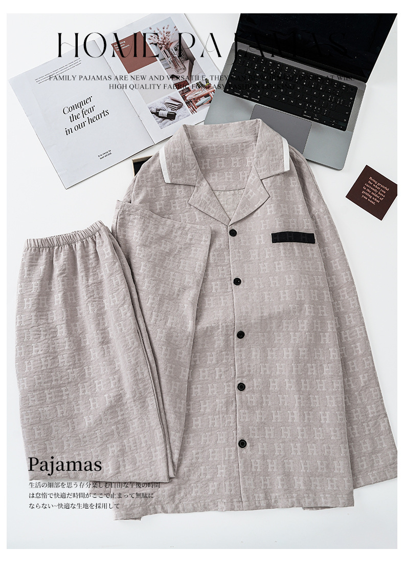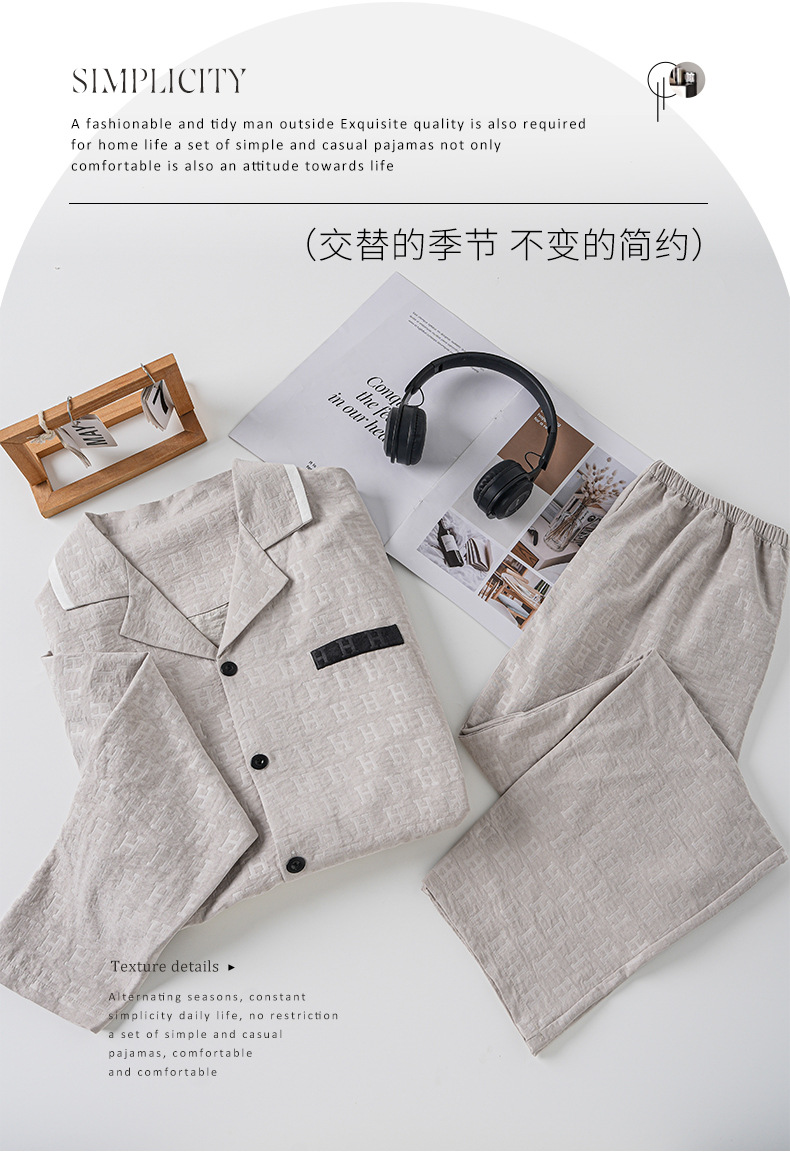 Pijama de hombre algodón de verano pantalones largos de manga corta ropa de casa primavera y otoño delgada rejilla suelta y tamaño grande conjunto