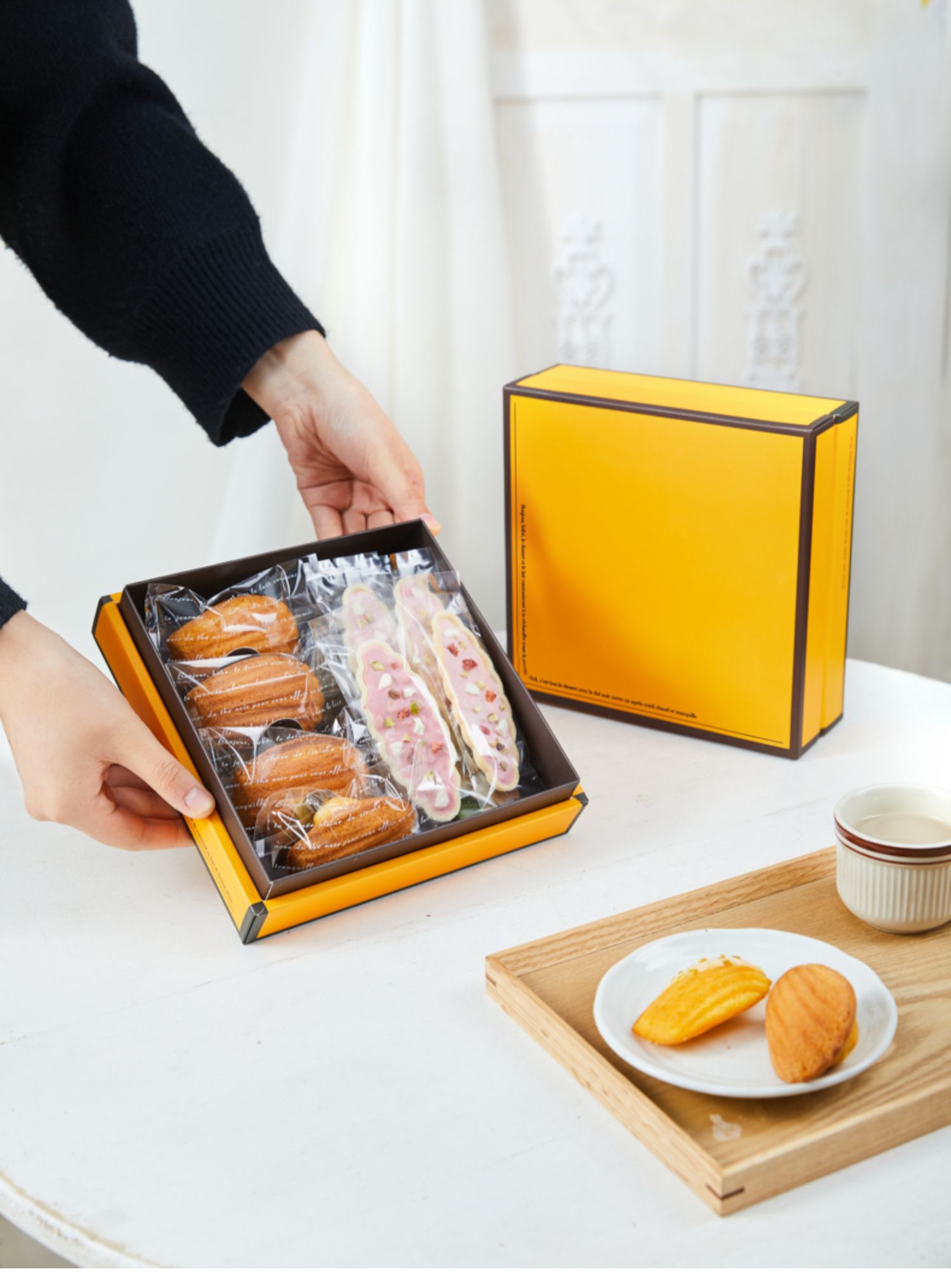 Jiugongge caja de embalaje de postre de seis rejillas embalaje mousse pastel embalaje yema de huevo crujiente caja de pastelería TikTok caliente