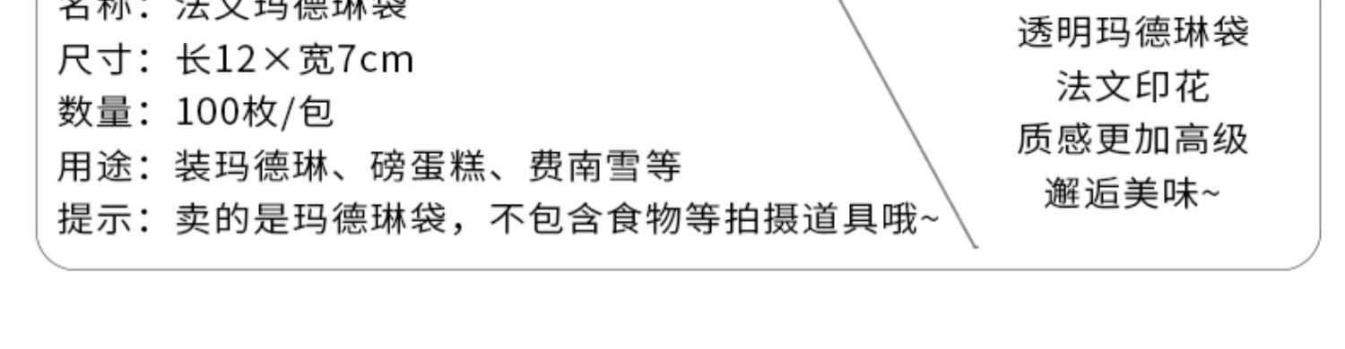 Bolsas claras francesas madelinas para hornear burritos de nieve pastel sellado bolsa de galletas rebanadas bolsas de bocadillos
