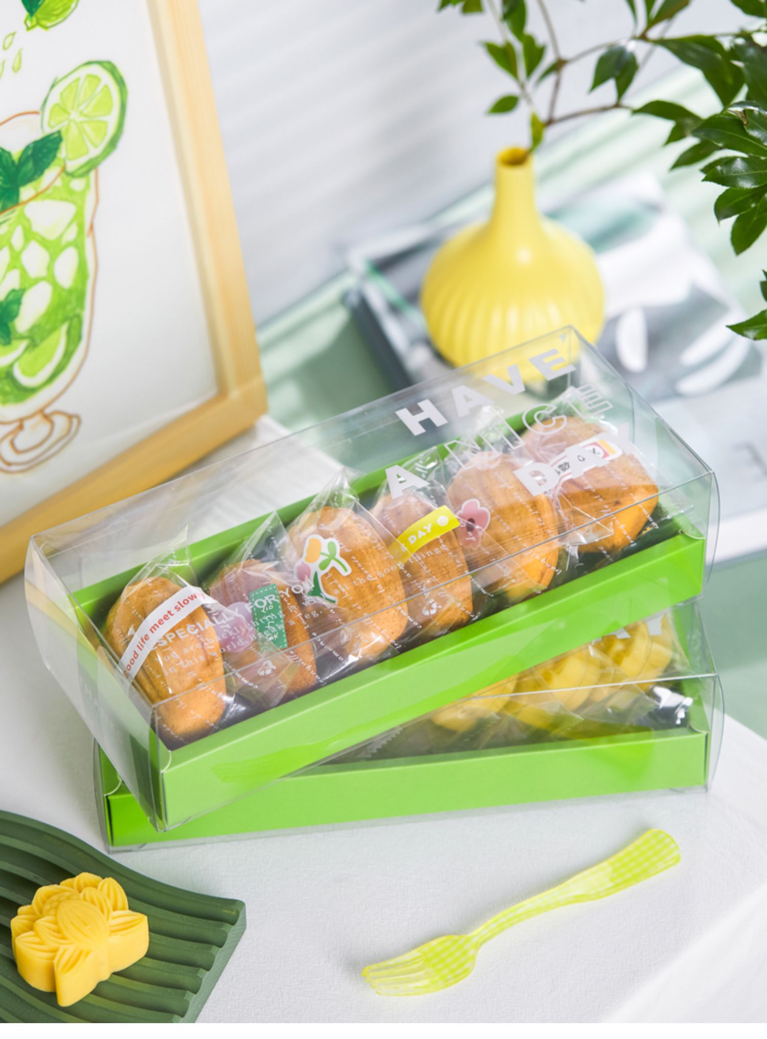 Ventana rectangular transparente macaron caja de embalaje pastel de judías verdes bola verde caja de embalaje pequeño pastel para hornear caja de moda nacional