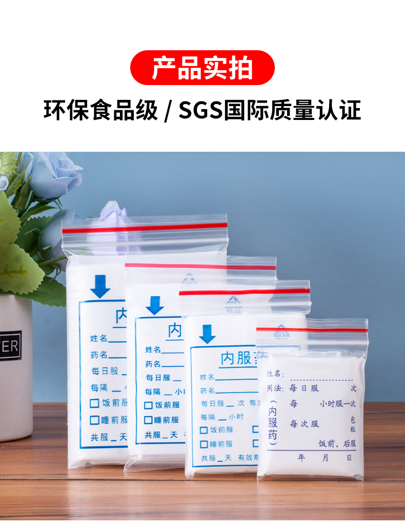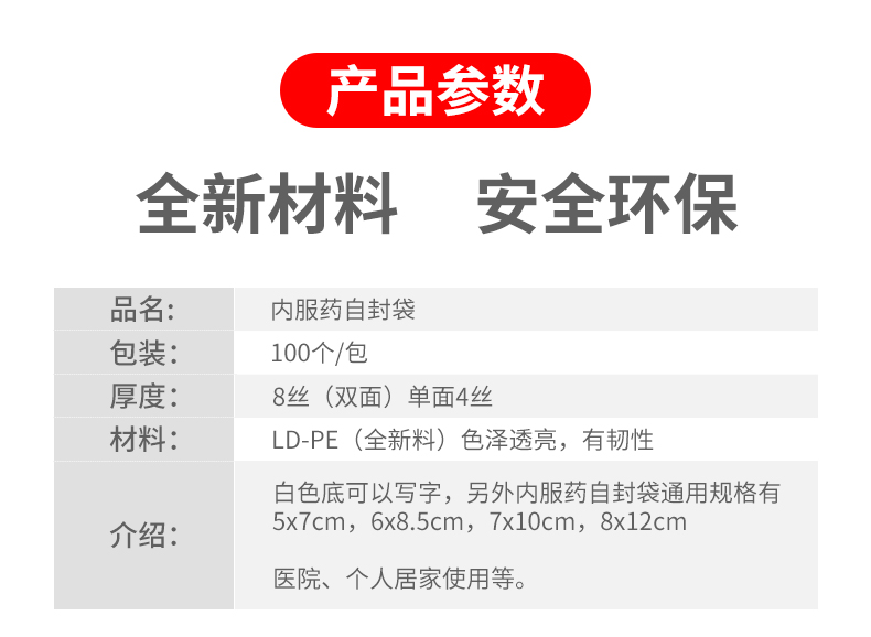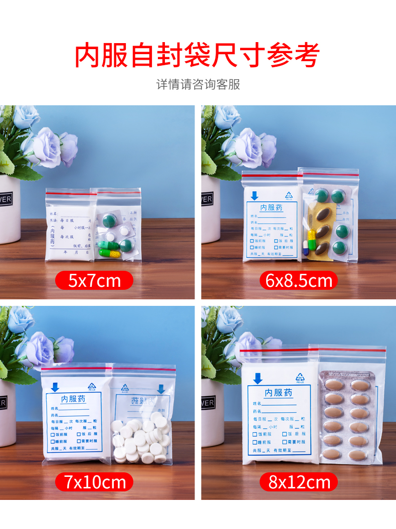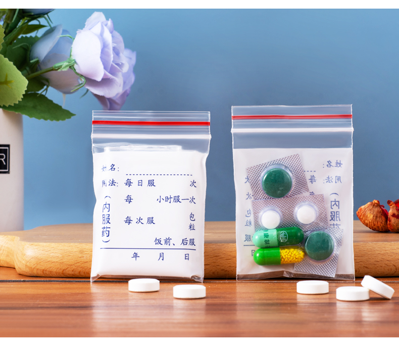 | Color | Bolsa de medicamentos, 5 * 7 bolsas de medicamentos, puede escribir bolsas autoselladas 16 hilos |
