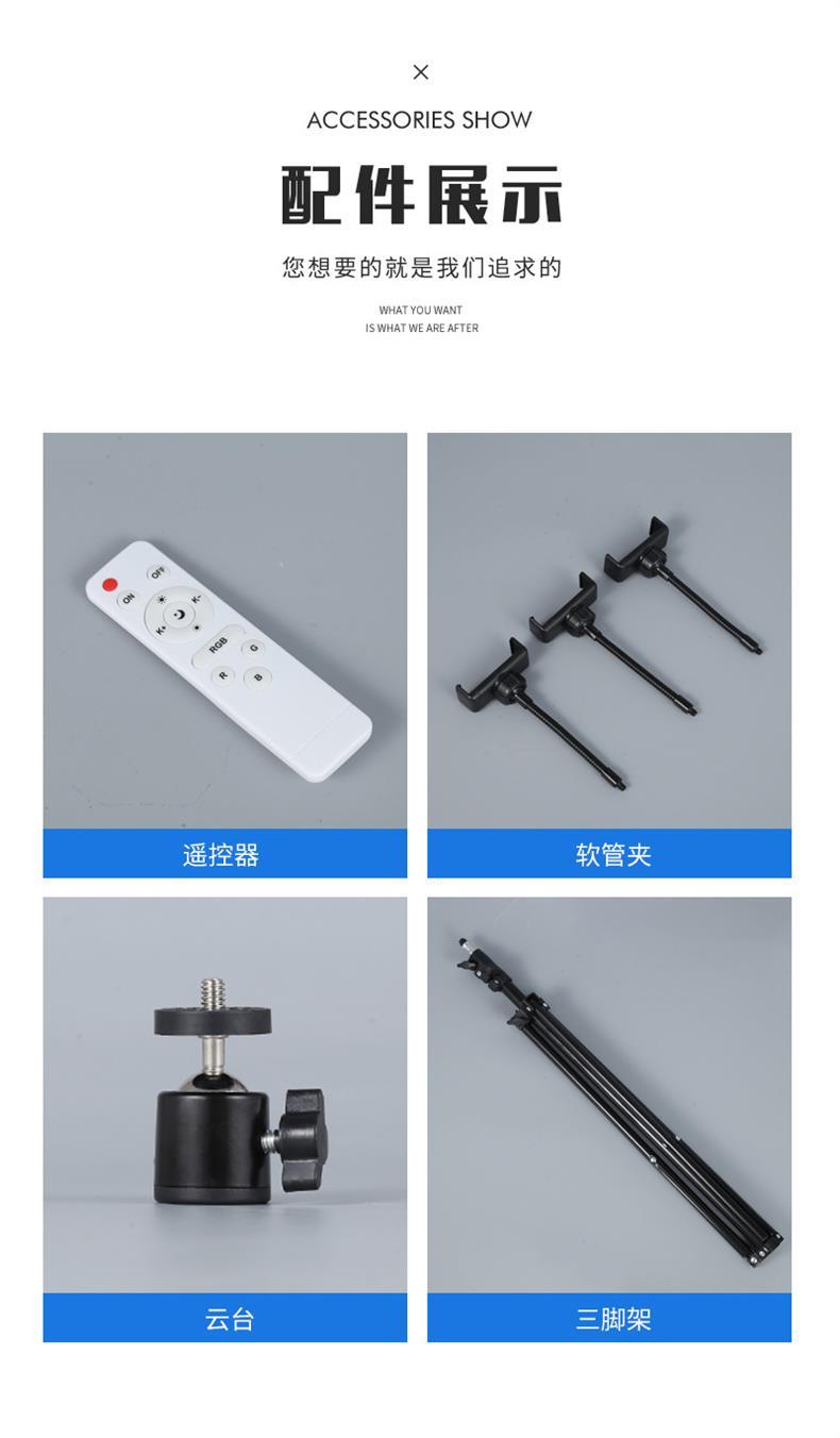 | Especificaciones | Lámpara de llenado de luz de 6 pulgadas (lámpara única), lámpara de llenado de luz de 10 pulgadas (lámpara única), trípode de plástico de 19 cm + lámpara de llenado de luz de 10 pulgadas (traje), trípode de plástico de 19 cm + lámpara de llenado de luz de 12 pulgadas (traje), trípode de plástico de 19 cm + lámpara de llenado de luz de 13 pulgadas (traje), trípode de 55 cm + lámpara de llenado de luz de 12 pulgadas (traje), trípode de 55 cm + lámpara de llenado de luz de 13 pulgadas (traje), soporte de 1,6 m + lámpara de llenado de luz de 10 pulgadas (traje), soporte de 1,6 m + lámpara de llenado de luz de 12 pulgadas (traje), soporte de 1,13 m lámpara de llenado de luz de pulgada (set), soporte de 2,1 m + lámpara de llenado de luz de 10 pulgadas (set), soporte de 2,1 m + lámpara de llenado de luz de 12 pulgadas (set), soporte de 2,1 m + lámpara de llenado de luz de 13 pulgadas (set), soporte de 55cm + lámpara de llenado de luz de 10 pulgadas + bluetooth, soporte de 55cm + lámpara de llenado de luz de 13 pulgadas + bluetooth, soporte de 2,1 cm + lámpara de llenado de luz de 10 pulgadas + bluetooth, soporte de 2,1 cm + lámpara de llenado de luz de 3 pulgadas + diente azul, 2,1 cm Soporte + luz de llenado de 13 pulgadas + asiento triple + Bluetooth |