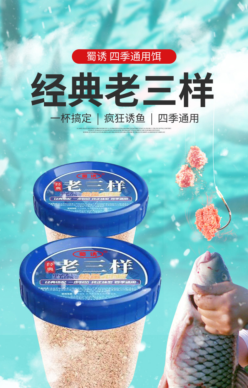 Shu señuelo clásico viejo tres tipos de cebo de pescado carpa crucian hierba carpa una taza para pescar Viejo tres tipos de pesca salvaje cebo de pozo negro