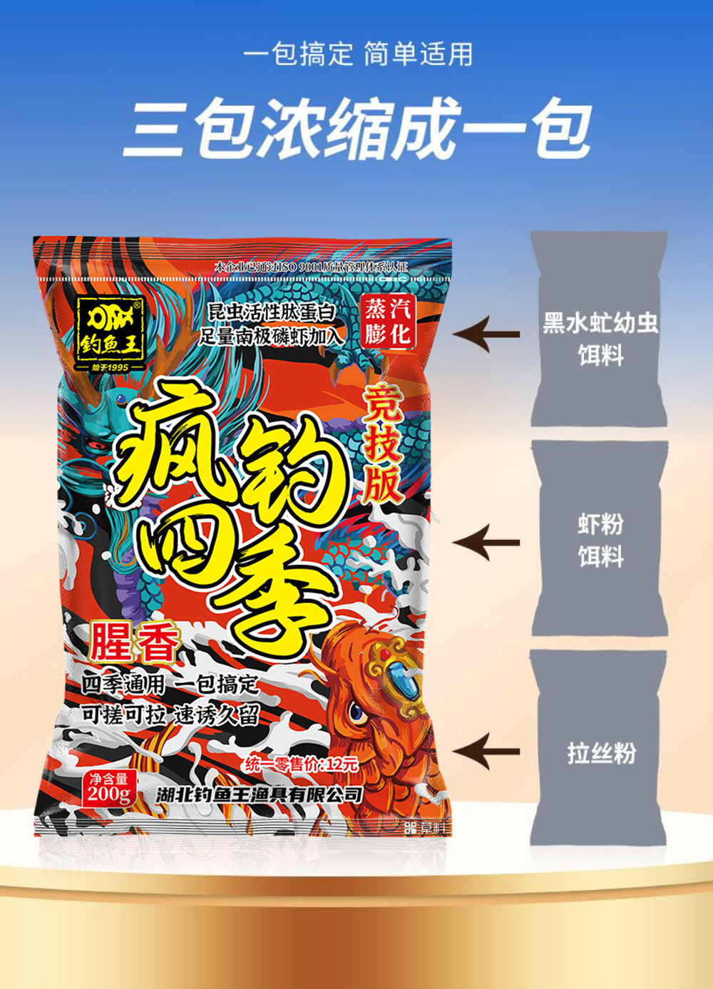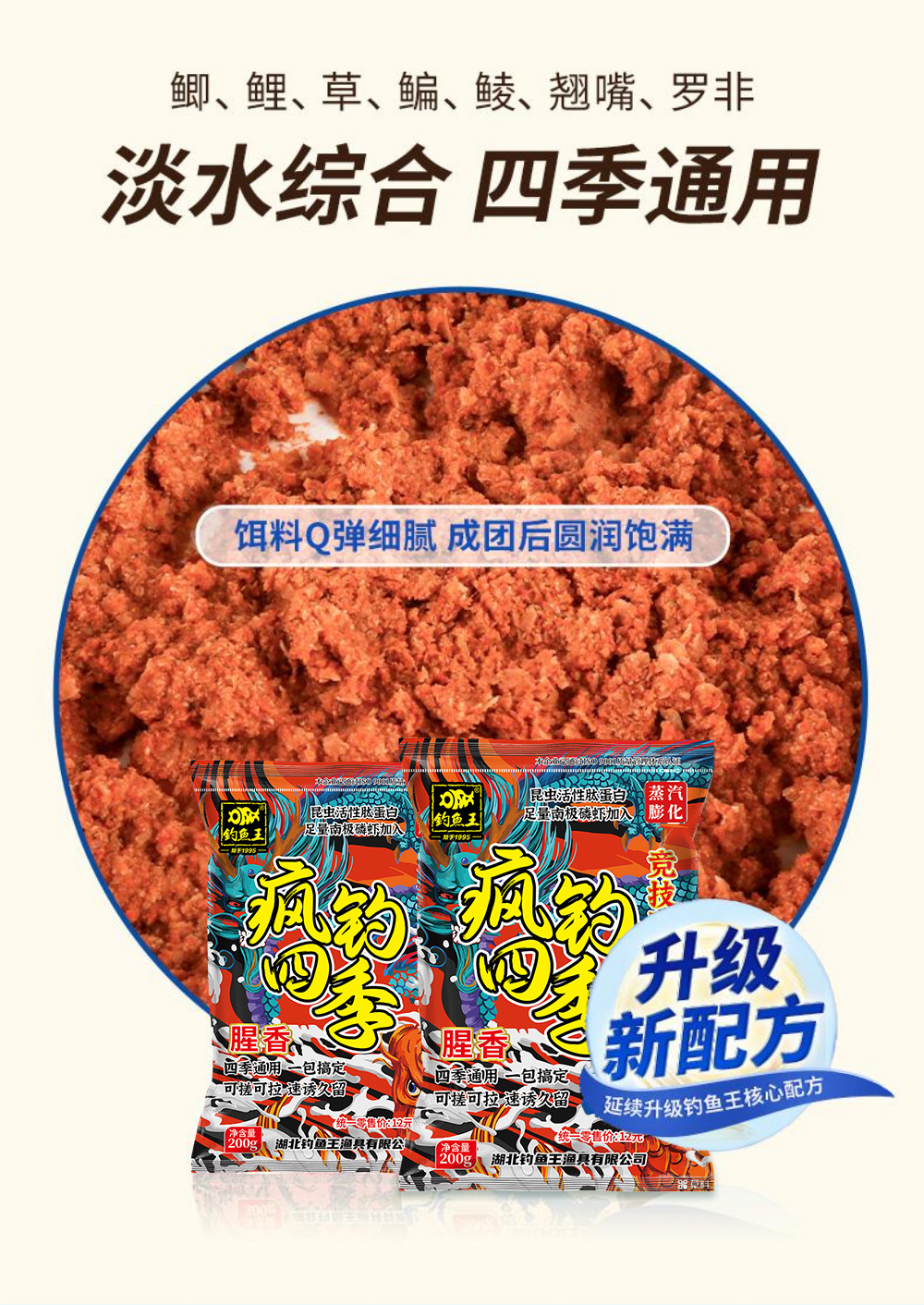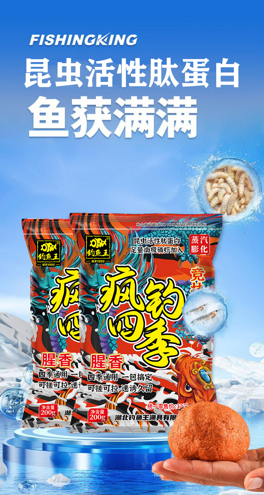 Fishing King Crazy Fishing Four Seasons Pez salvaje con proteínas de péptidos pequeños para carpa cruciana y carpa Modelo 2024, un paquete para carpa cruciana grande y carpa grande.