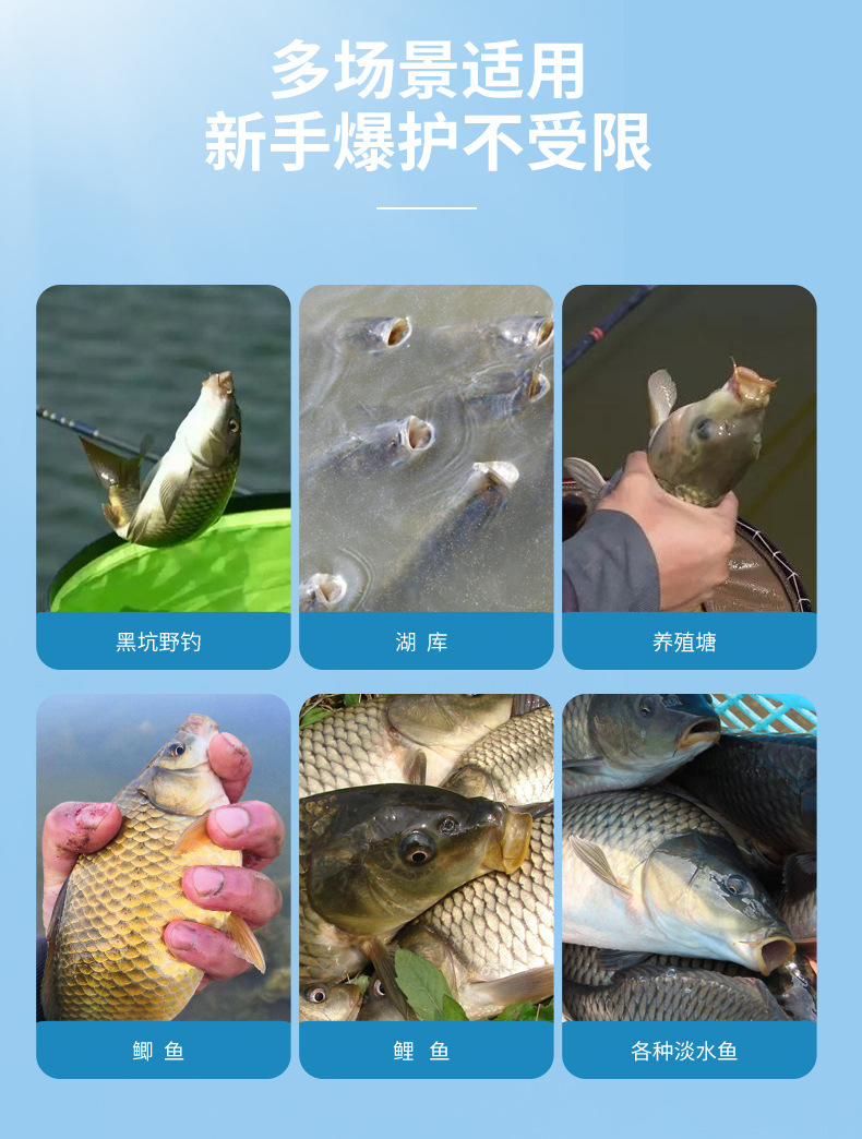 Sebo general para peces de agua dulce de cuatro estaciones, polvo de pescado de atractivo de Shu, medicina pequeña, agujero negro, grano de hierba, tilapia