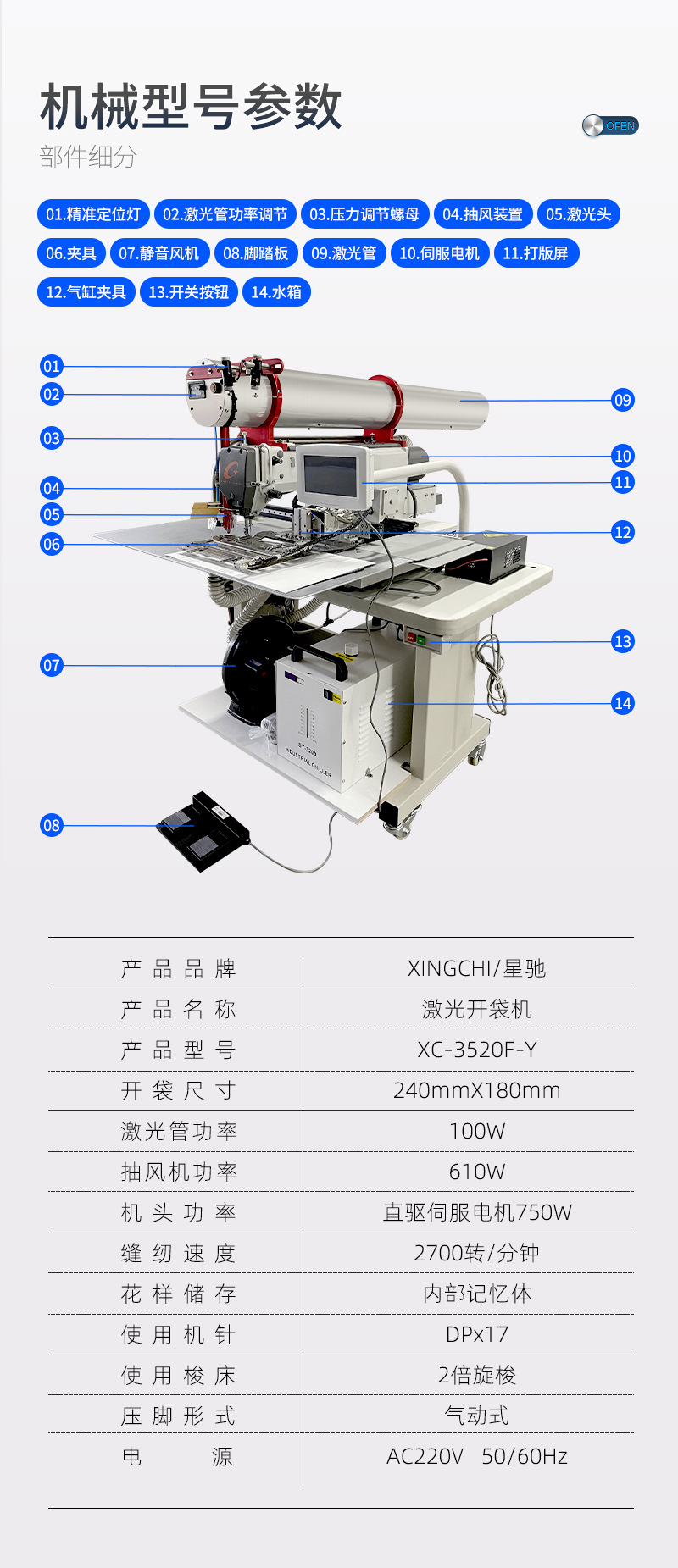| Especificaciones | Abrelatas de bolsa láser de tubo redondo |