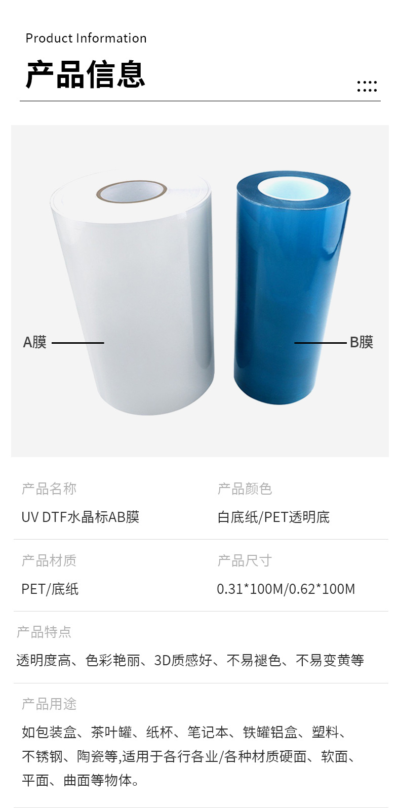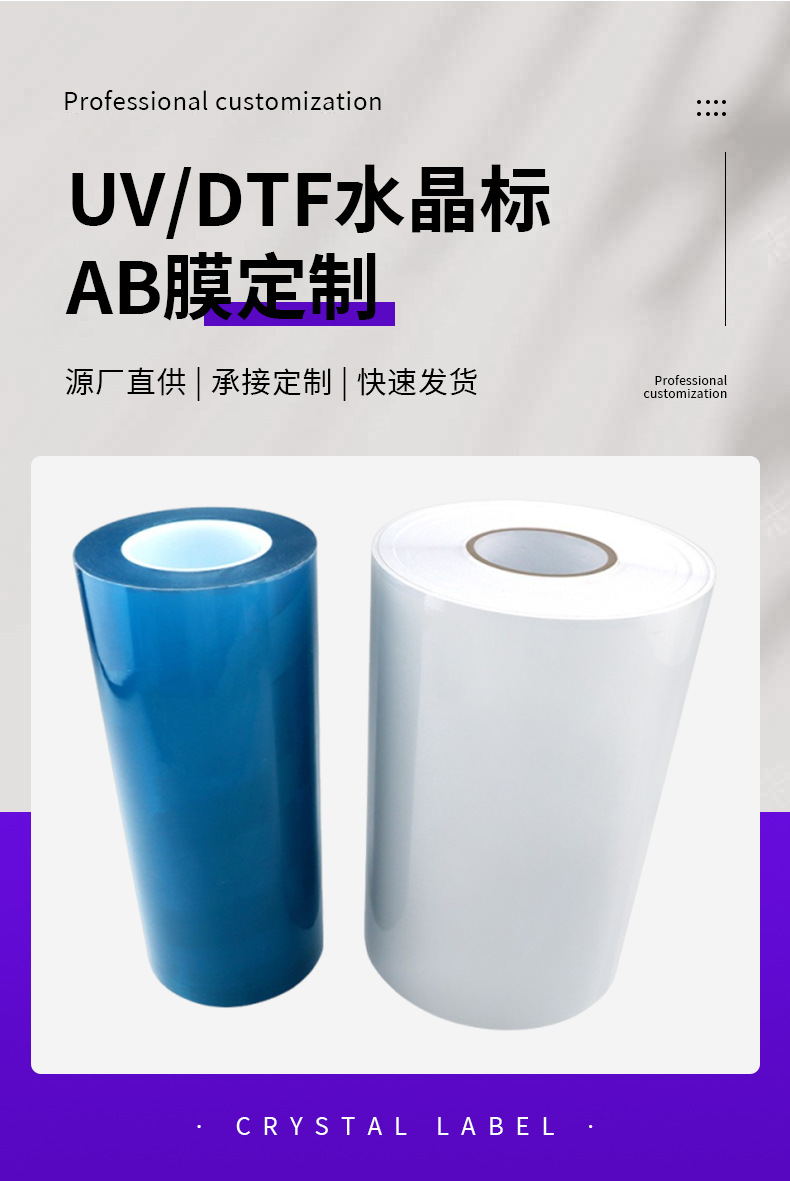 Impresión de cristal AB película de impresión de color UV sin pegamento de transferencia en frío película de bobina UV de alta viscosidad se puede personalizar impresión multipropósito