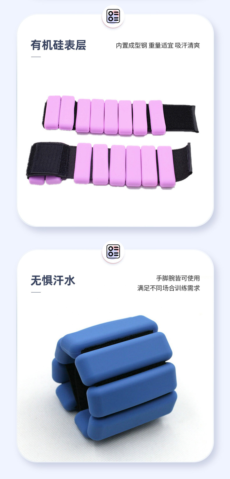 产品材质:硅胶+负重钢片产品