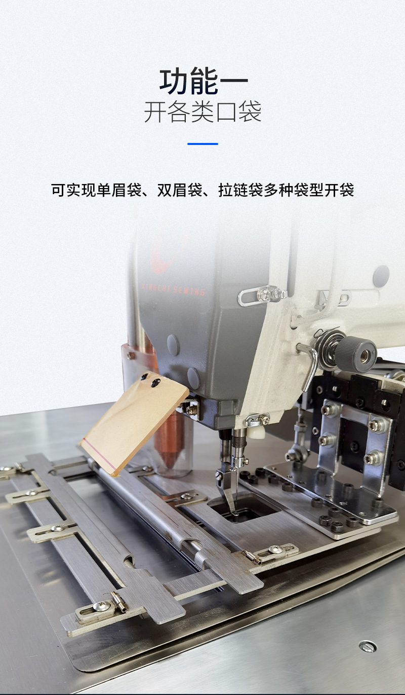 Máquina de apertura de bolsas láser de la marca Xingchi, apertura automática de ropa, jeans, bolsillo de un solo labio, equipo de costura automático