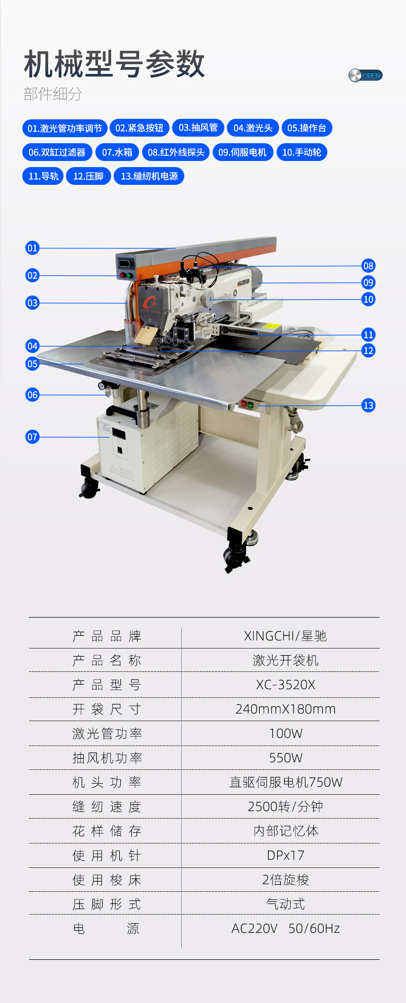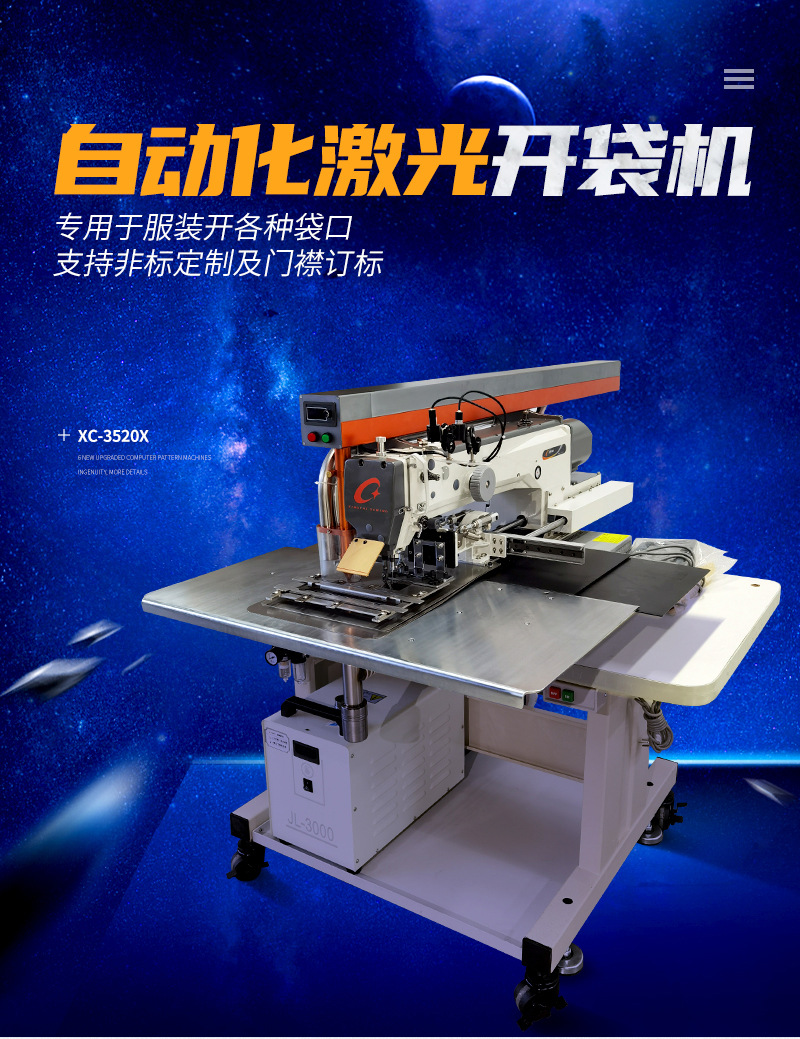 Star驰 3520 máquina de apertura de bolsillos máquina de apertura de bolsillos láser de gran alcance máquina de coser automática de prendas