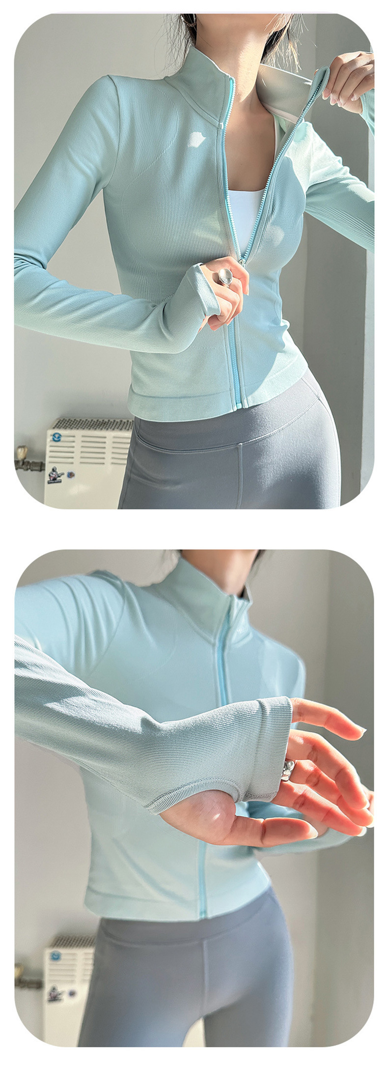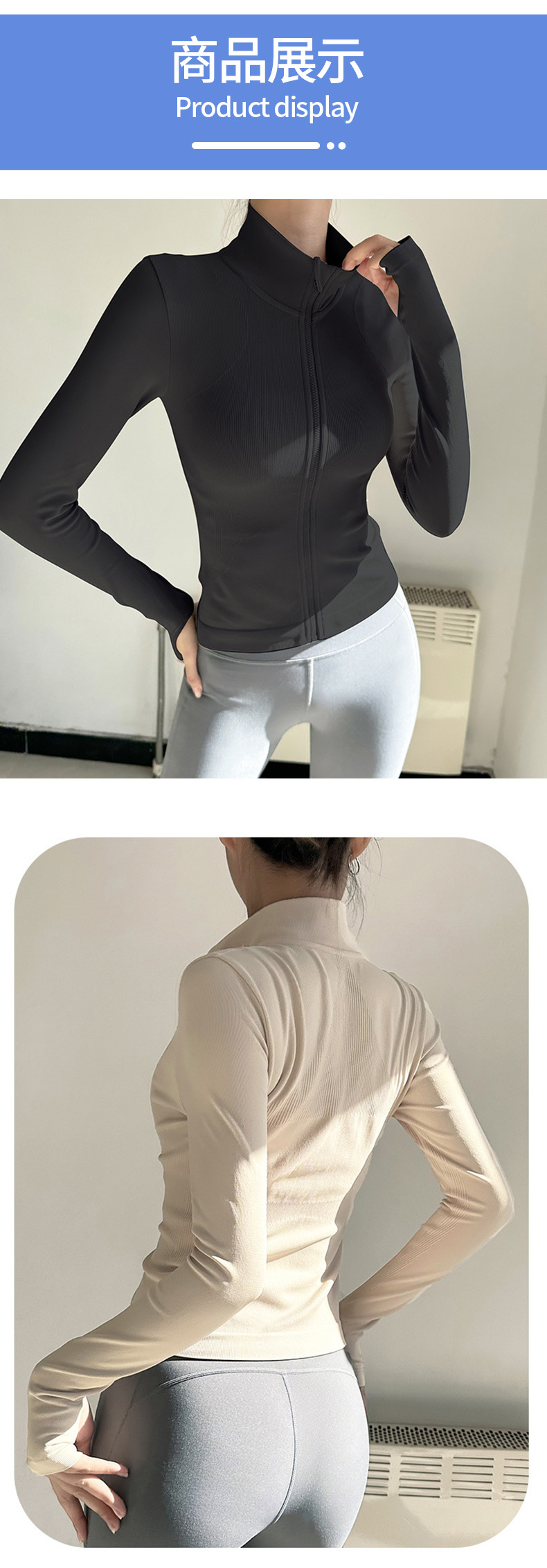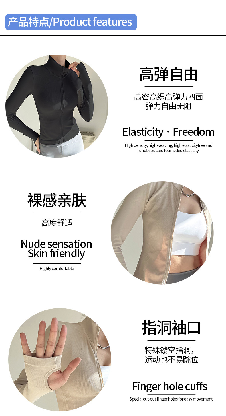 Ropa deportiva con cremallera desnuda de primavera y otoño transfronteriza, camisa ajustada al aire libre informal, deportes para correr, chaqueta delgada de manga larga