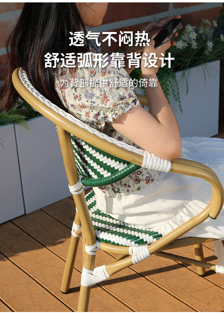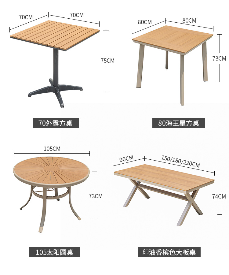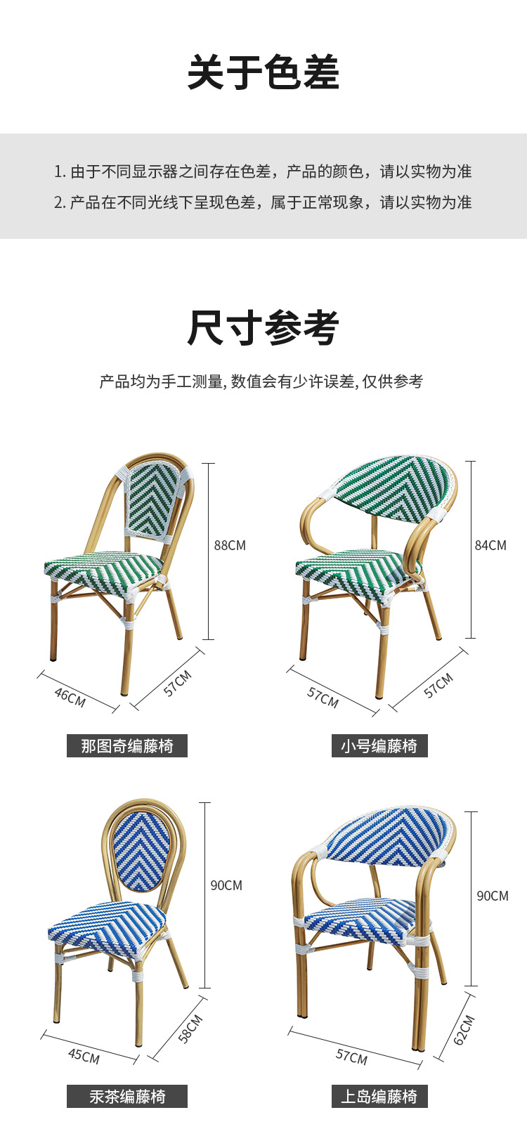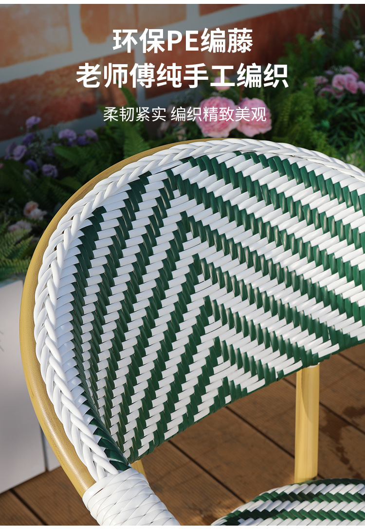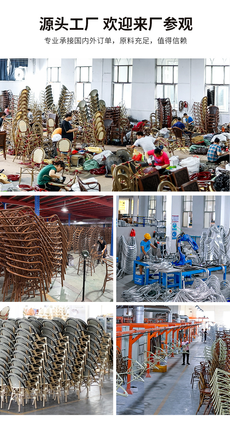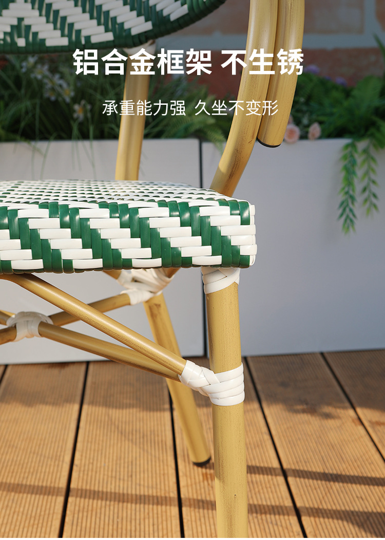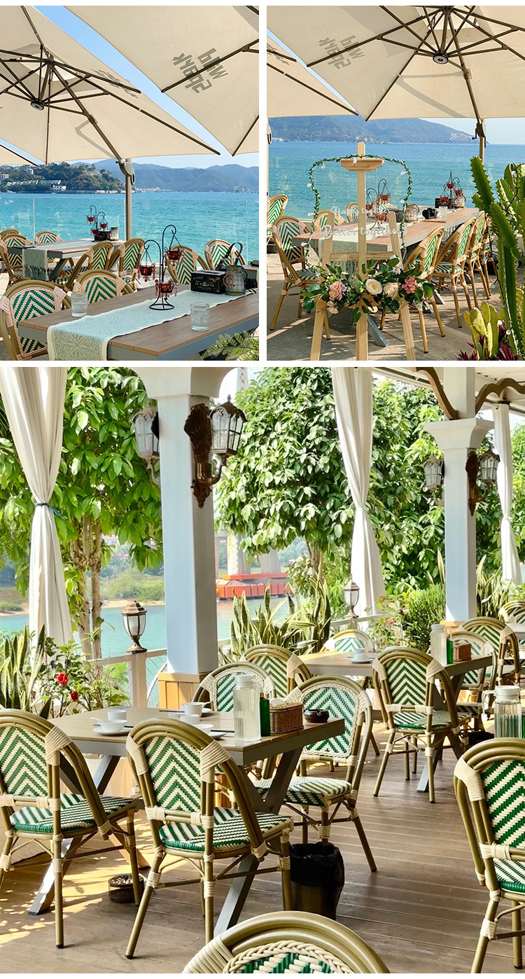 | Modelo | Mesa de madera de plástico, silla de ratán, marco de aleación de aluminio |