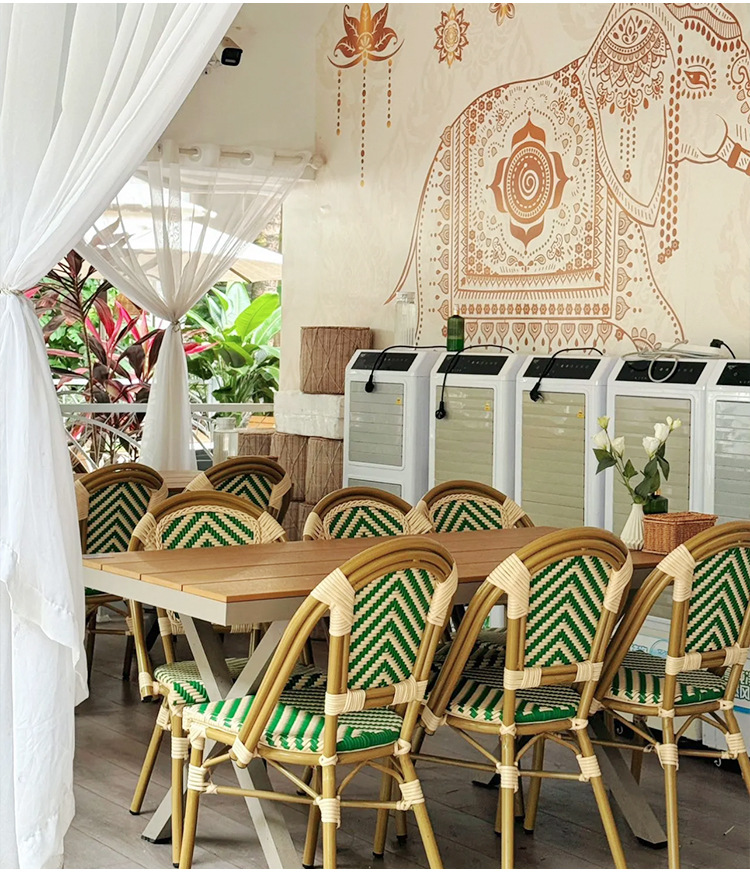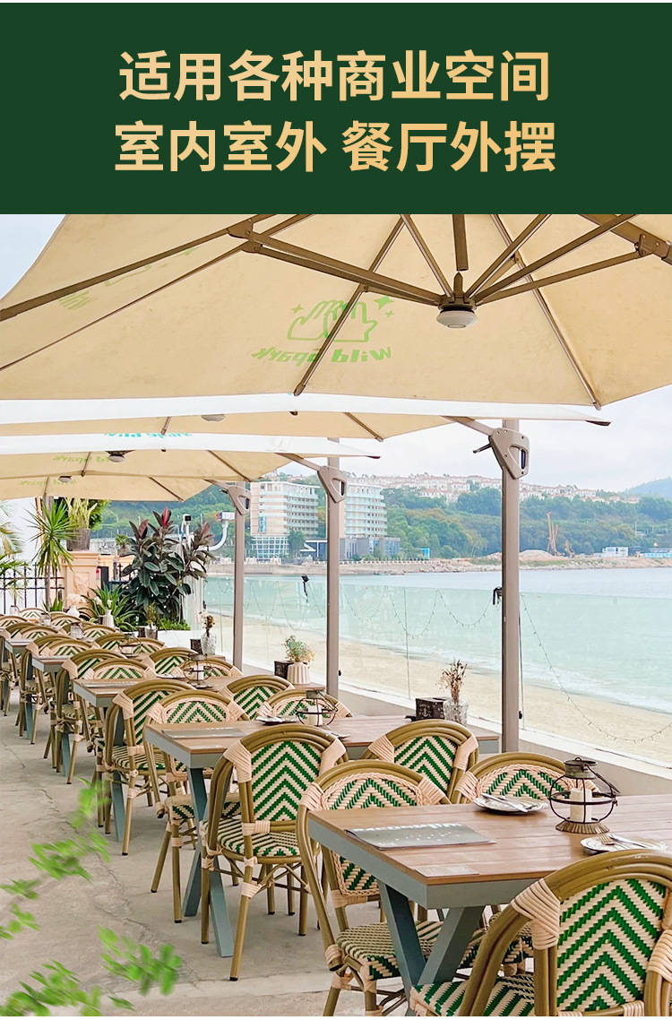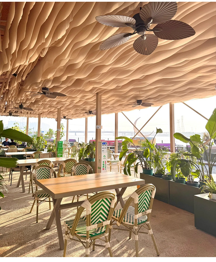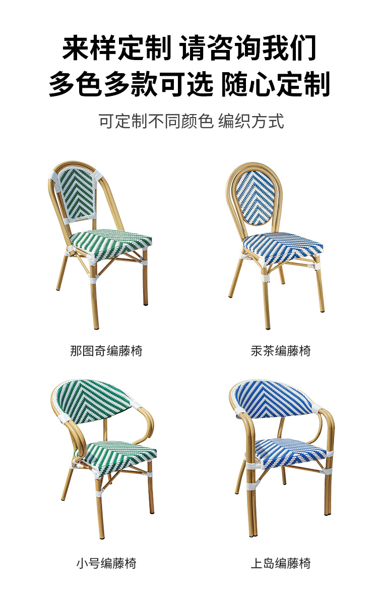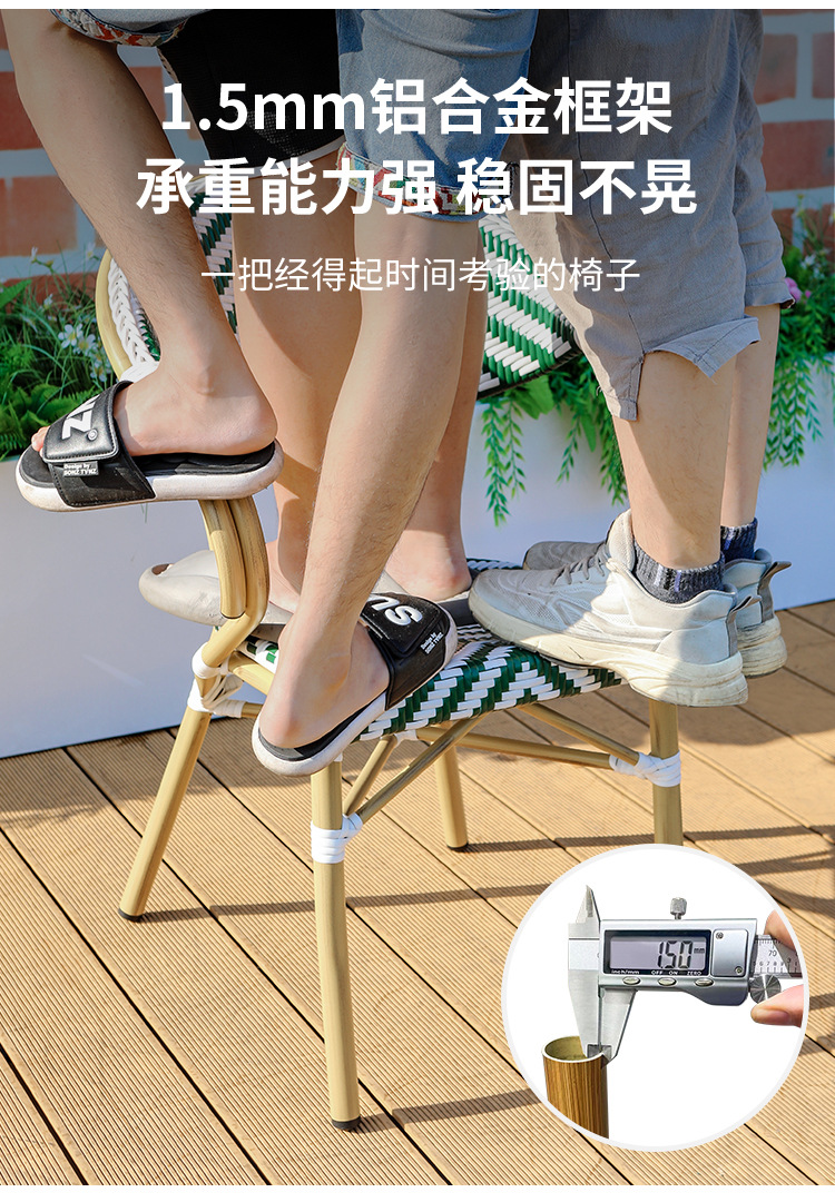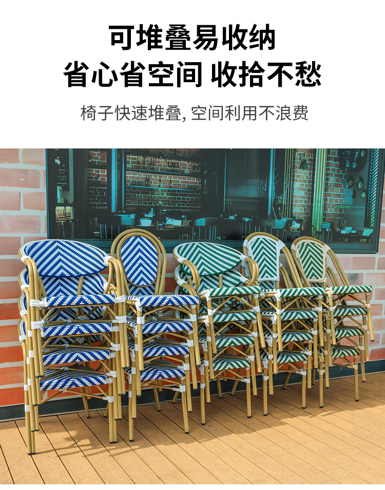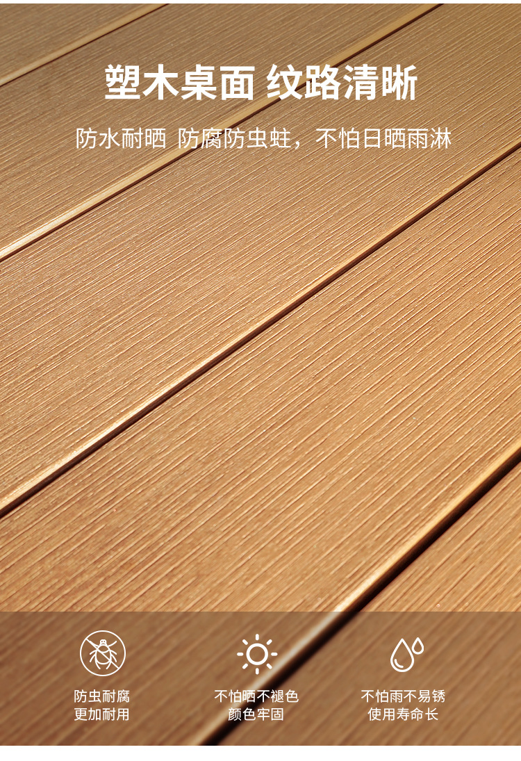 | Modelo | Mesa de madera de plástico, silla de ratán, marco de aleación de aluminio |