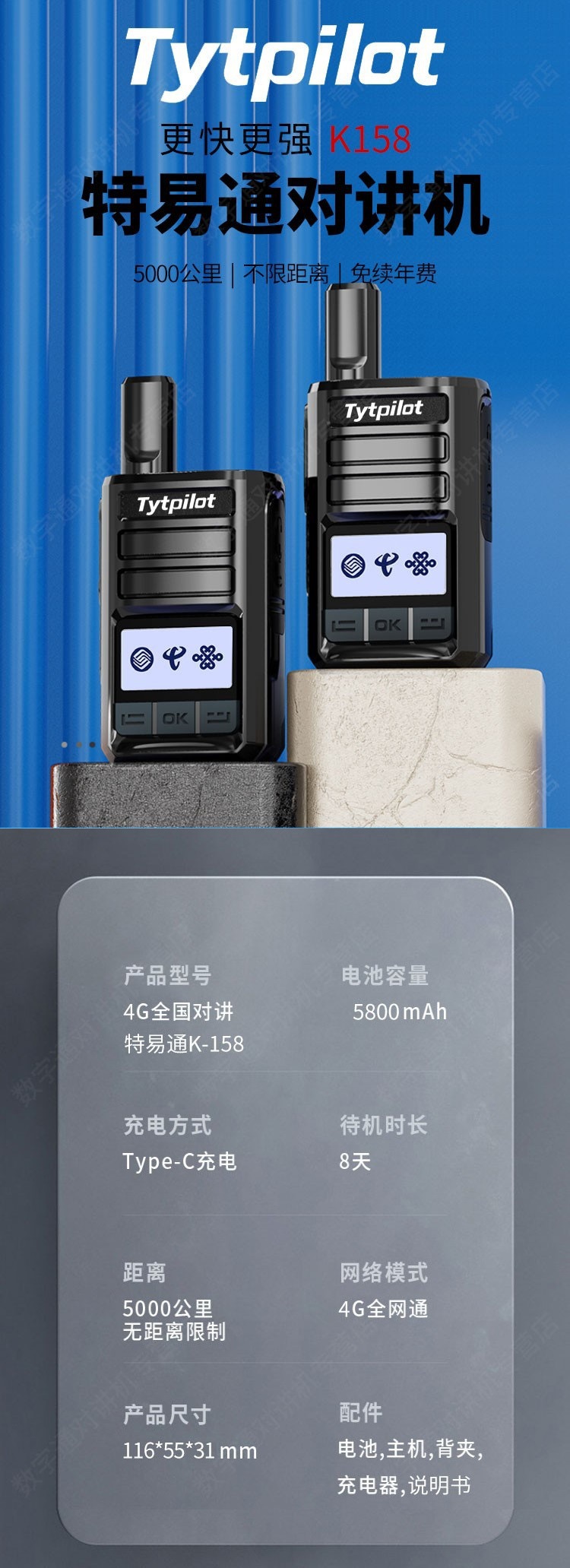 TYT teyitong walkie-talkie de larga distancia K158 Red Pública 5000km con tarjeta de renovación gratuita de toda la nación tarjeta enchufable
