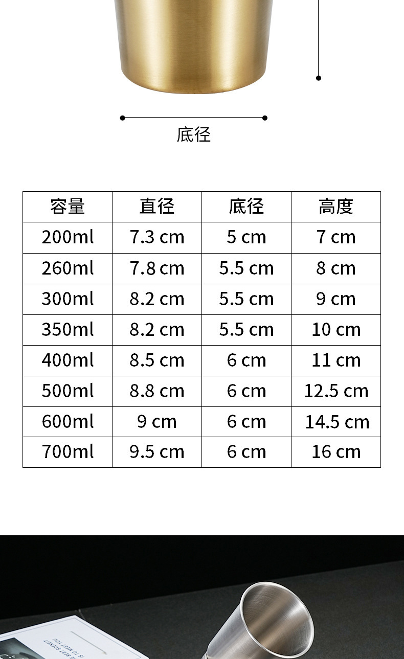 | Color | 260ML taza de cerveza # color de acero,300ML taza de cerveza # color de acero,Color de acero de la taza # de la cerveza 350ML,Color de acero de la taza # de la cerveza 400ML,500ml taza de cerveza # color acero,Color de acero de la taza # de la cerveza 600ML,260ML taza de cerveza # oro,300ML taza de cerveza # oro,350ML taza de cerveza # oro,400ML taza de cerveza # oro,500ml taza de cerveza # oro,600ML taza de cerveza # oro |
