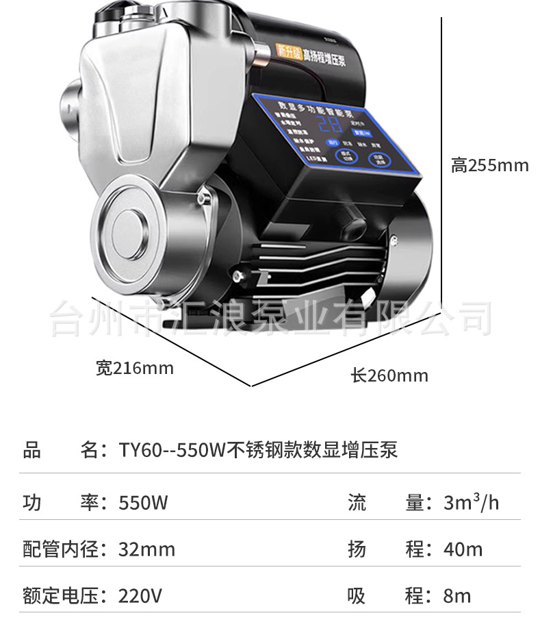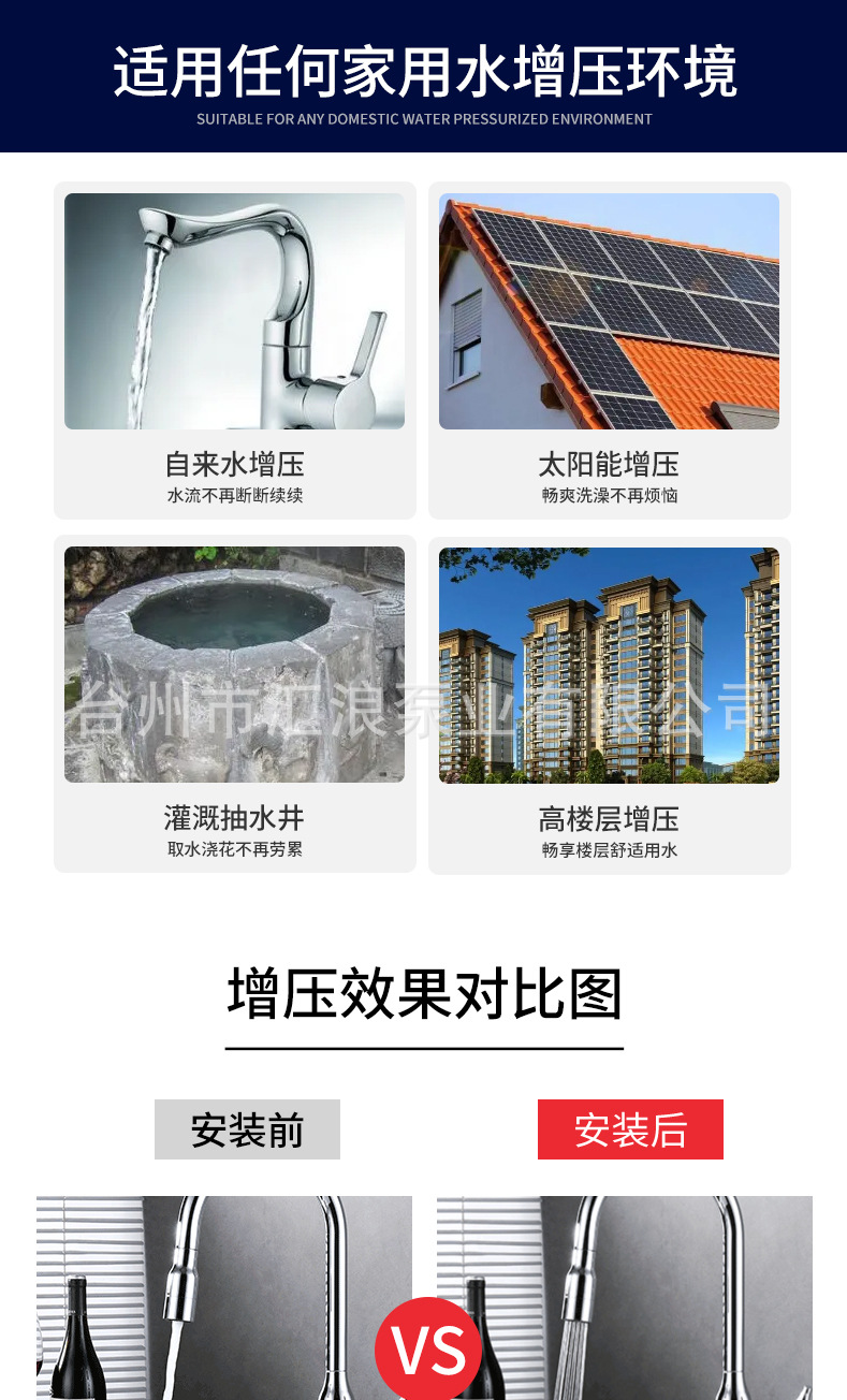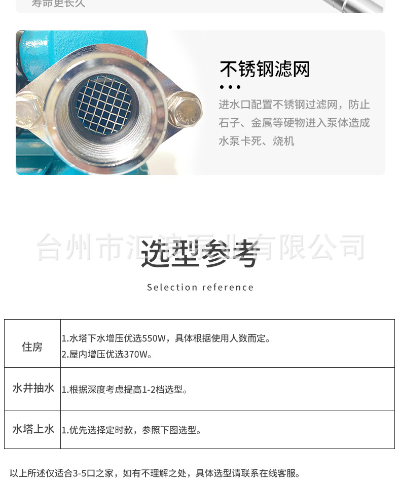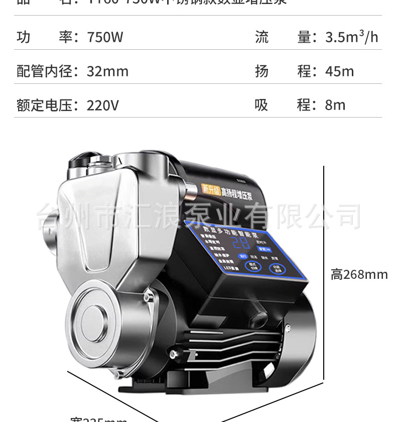 | Especificaciones | 300W [Acero inoxidable inteligente de arranque y parada] Detección automática de presión de arranque y parada,370W [Acero inoxidable inteligente de arranque y parada] Detección automática de presión de arranque y parada,550W [Acero inoxidable inteligente de arranque y parada] Detección automática de presión de arranque y parada,300W [Pantalla digital LCD de acero inoxidable] Pantalla de presión AI Control inteligente Protección anticongelante Protección contra la escasez de agua,370W [Pantalla digital LCD de acero inoxidable] Pantalla de presión AI Control inteligente Protección anticongelante Protección contra la escasez de agua,550W [Pantalla digital LCD de acero inoxidable] Pantalla de presión AI Control inteligente Protección anticongelante Protección contra la escasez de agua,750W [Pantalla digital LCD de acero inoxidable] Pantalla de presión AI Control inteligente Protección anticongelante Protección contra la escasez de agua,950W [pantalla digital LCD de acero inoxidable] pantalla de presión AI control inteligente protección anticongelante protección contra la escasez de agua,1100W [pantalla digital LCD de acero inoxidable] pantalla de presión AI control inteligente protección anticongelante protección contra la escasez de agua,300W [Modelo inteligente] Detección automática de presión de arranque y parada,370W [Modelo inteligente] Detección automática de presión de arranque y parada,550W [Modelo inteligente] Detección automática de presión de arranque y parada |