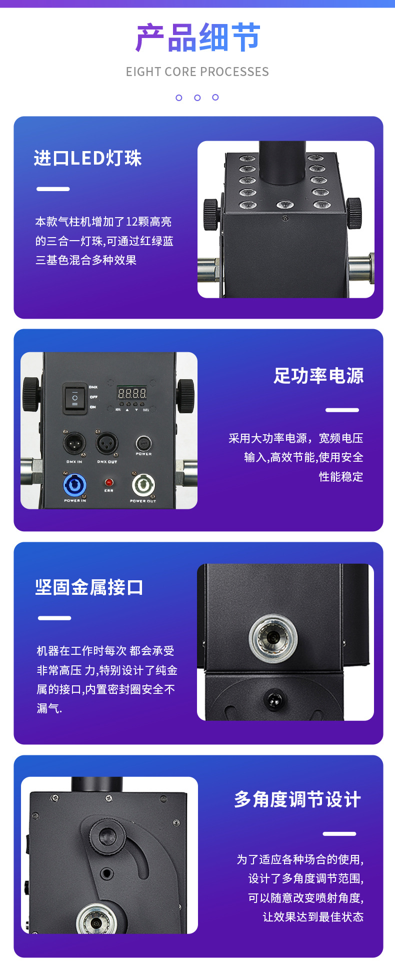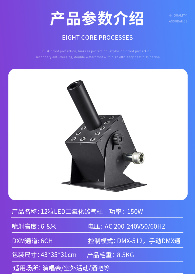 | Especificaciones | Máquina de columna de gas de dióxido de carbono LED de 12 partículas |