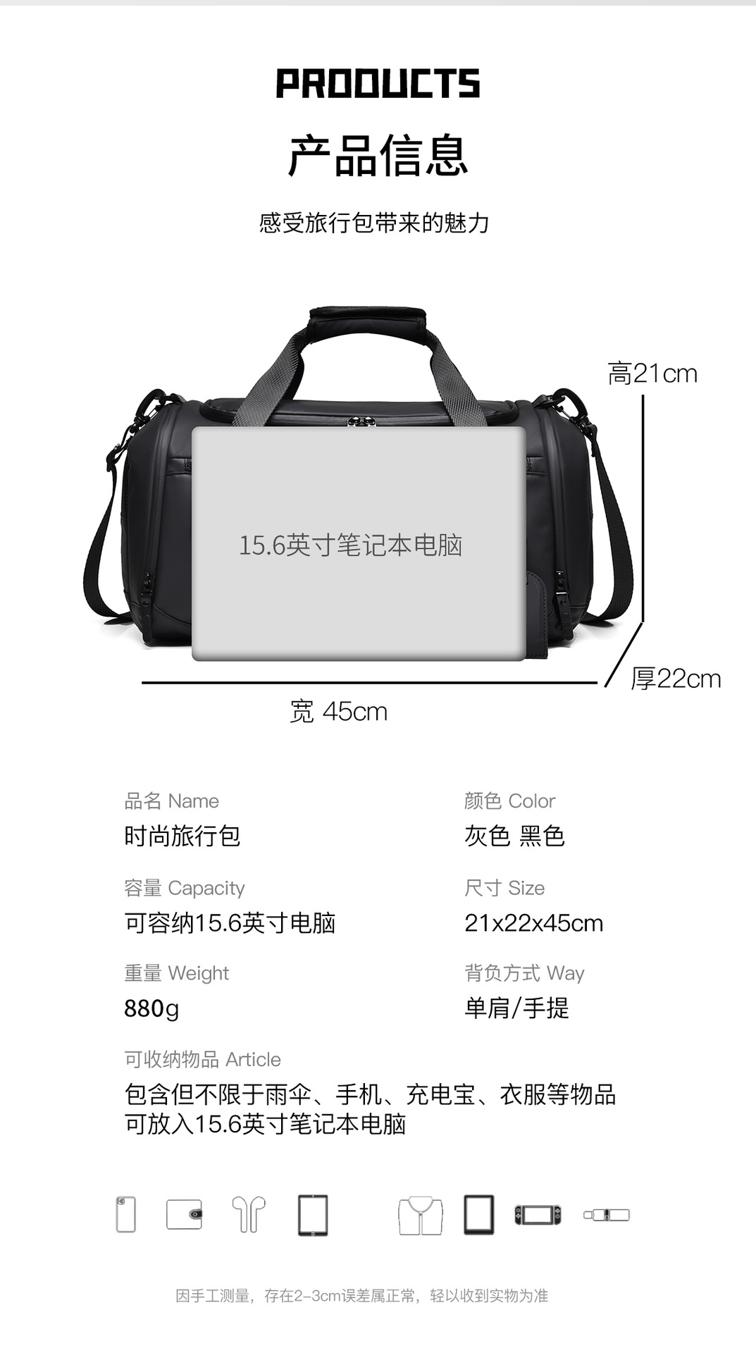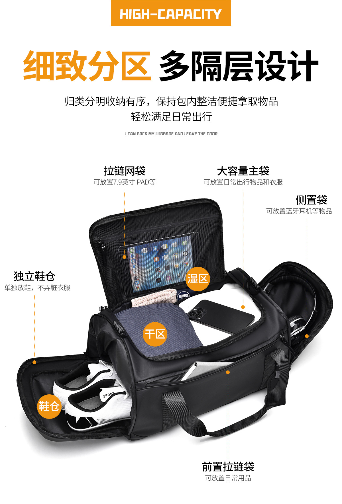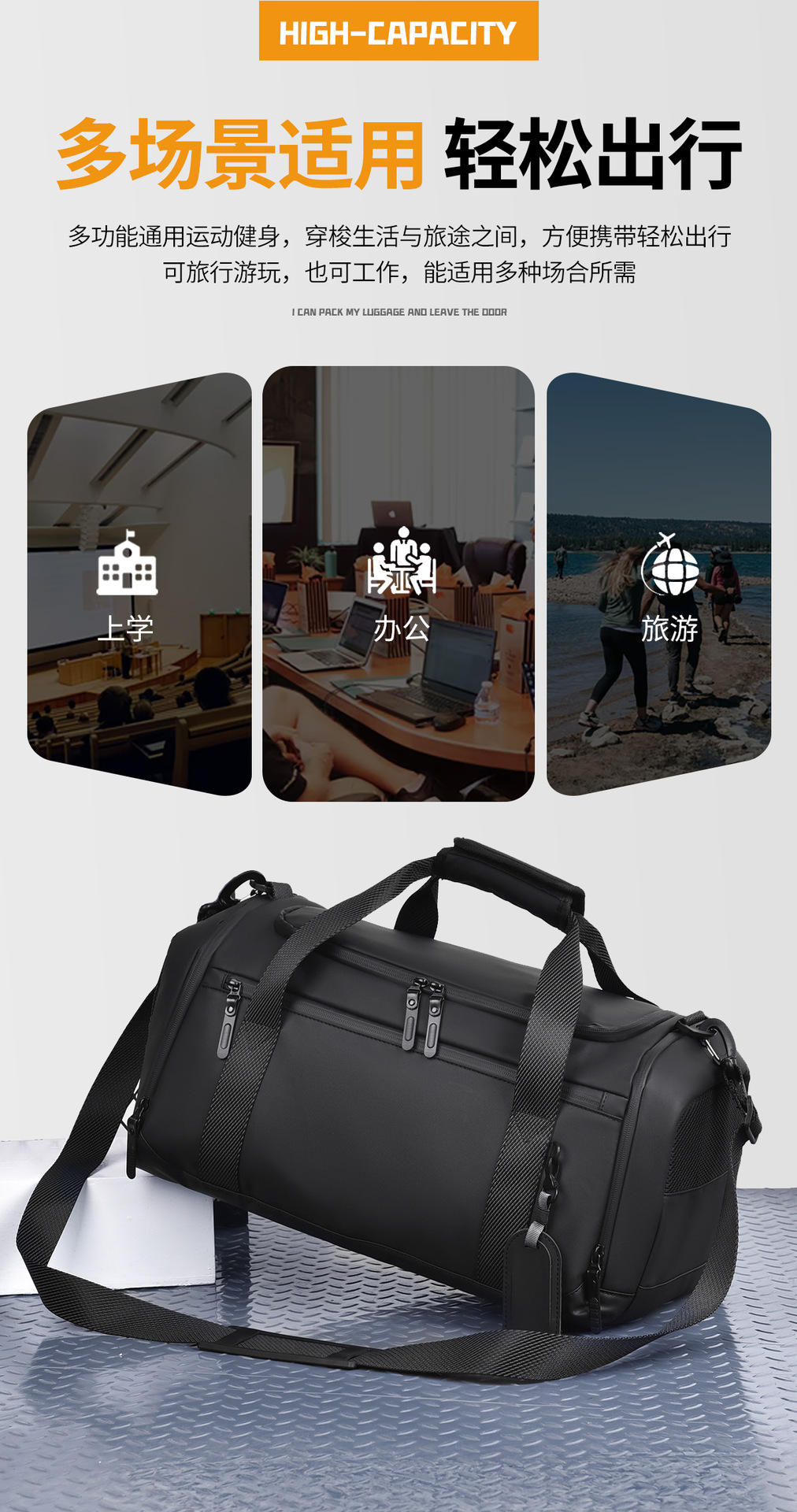 Bolsa deportiva de fitness separación húmeda seca viaje de viaje bolsa de almacenamiento corto viaje de negocios bolsa de viaje de gran capacidad de ocio al aire libre