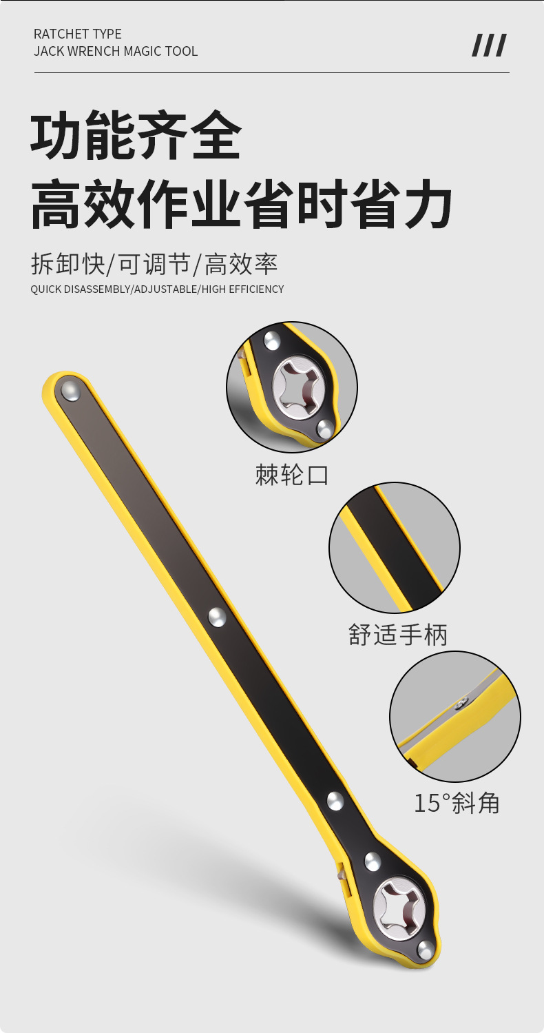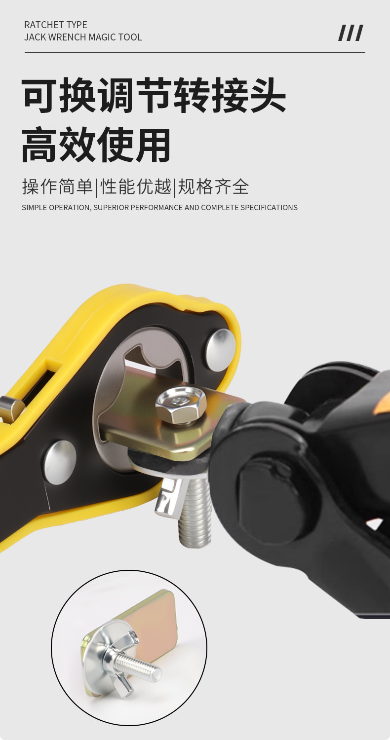 Llave de trinquete retráctil ajustable rápida de grado industrial multi-funcional de una sola cabeza alargada Llave de trinquete voladora grande de 72 dientes