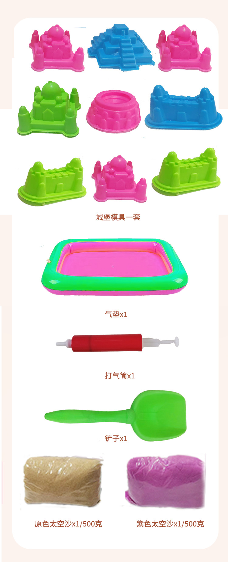 | Especificaciones | 2l almacena cubos de arena espacial (arena bicolor + 12 moldes), 3l almacena cubos de arena espacial (arena bicolor + Mesa de arena inflable + 14 accesorios) |