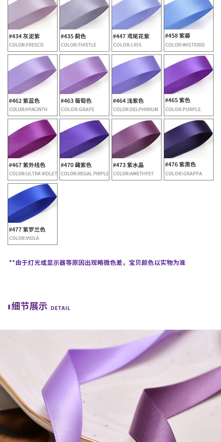 | Color | 420 Lila púrpura,430 lavanda,434 yeso púrpura,435 Cardo color,447 Iris púrpura,458 wisteria,462 azul púrpura,463 color de la uva,464 luz púrpura,465 púrpura,Color UV 467,470 Púrpura Xizango,473 Amatista,476 púrpura Negro |