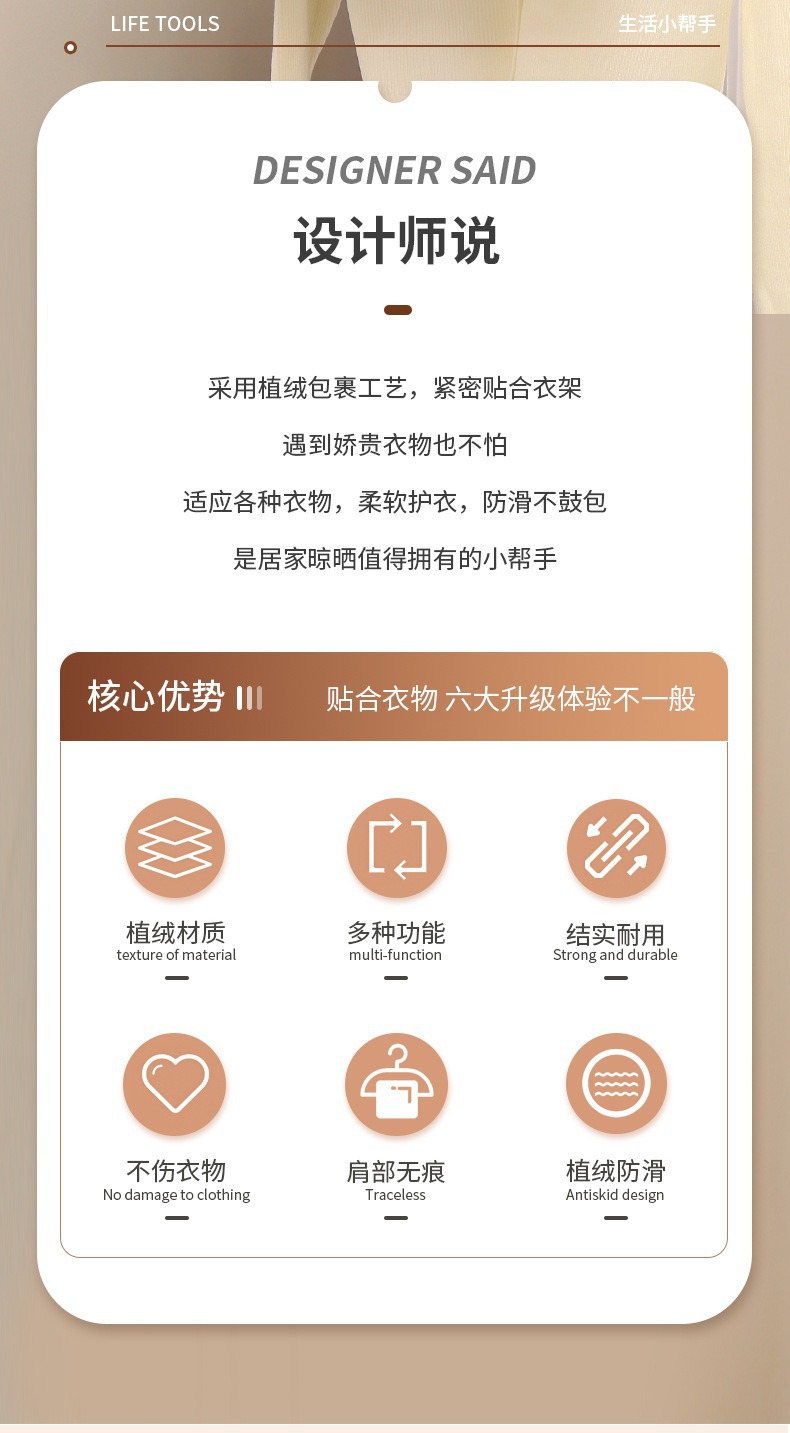 符合人体工程学,能很好的支撑衣物,方便收纳和使用