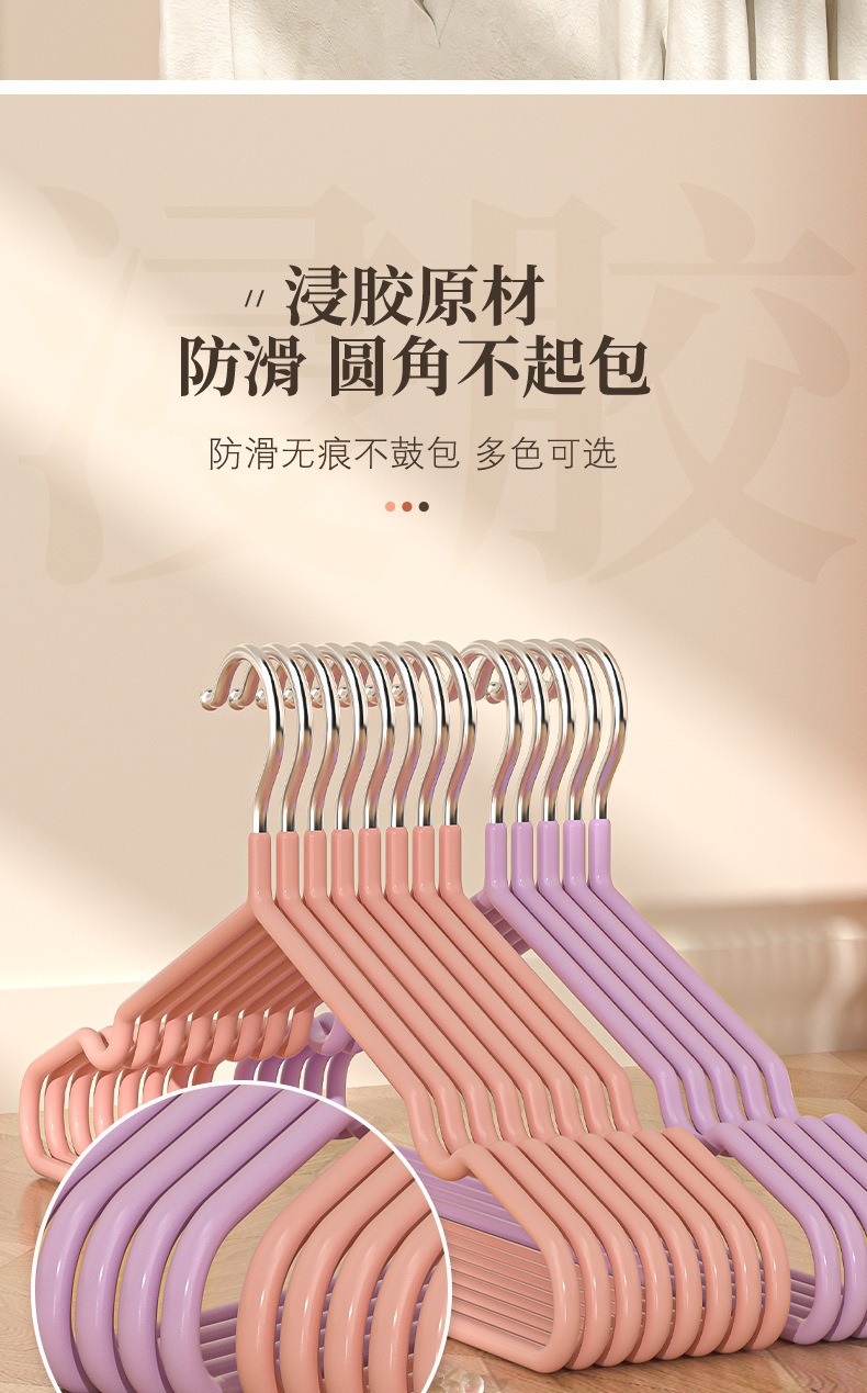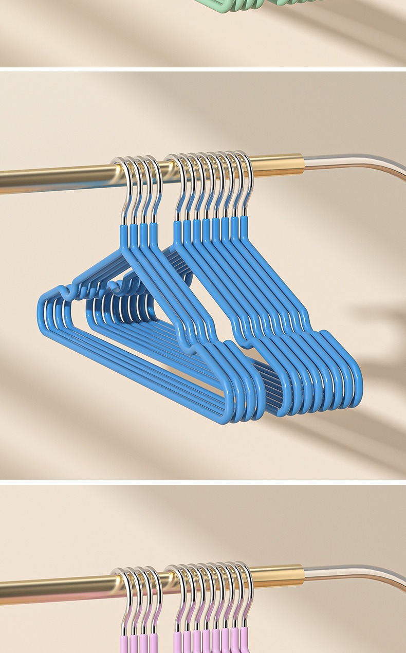 衣架坚固耐用,使用优质高锰钢,不易变形,不易折断,这款浸塑衣架具有良好的抗腐蚀性抗生锈能力 能延长使用寿命