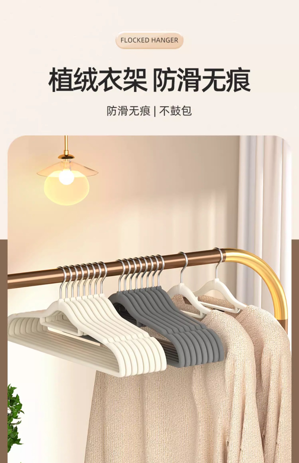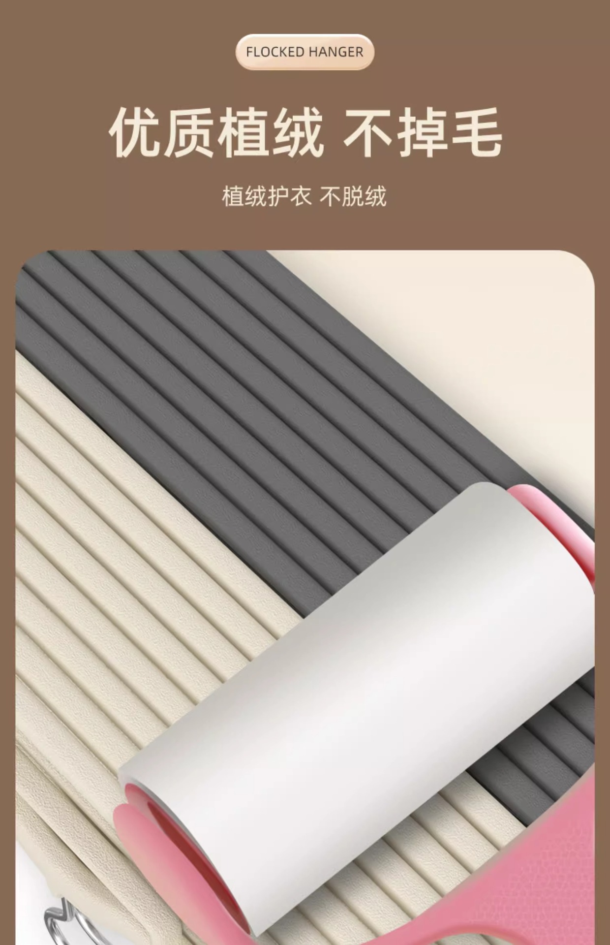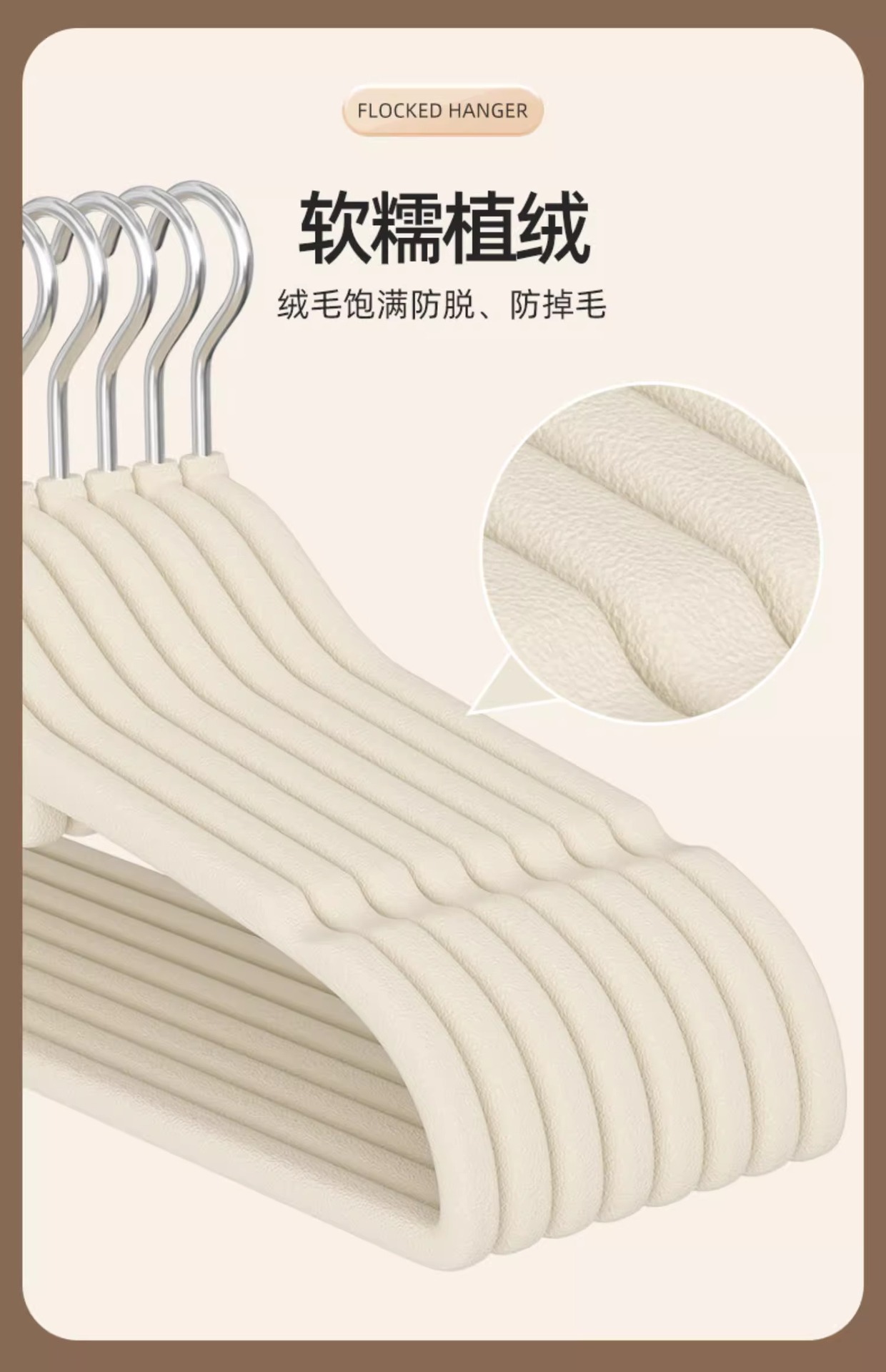 Flocado estante de ropa al por mayor posición colgante flocado percha de ropa Exportación de comercio exterior sin costura flocado percha de ropa
