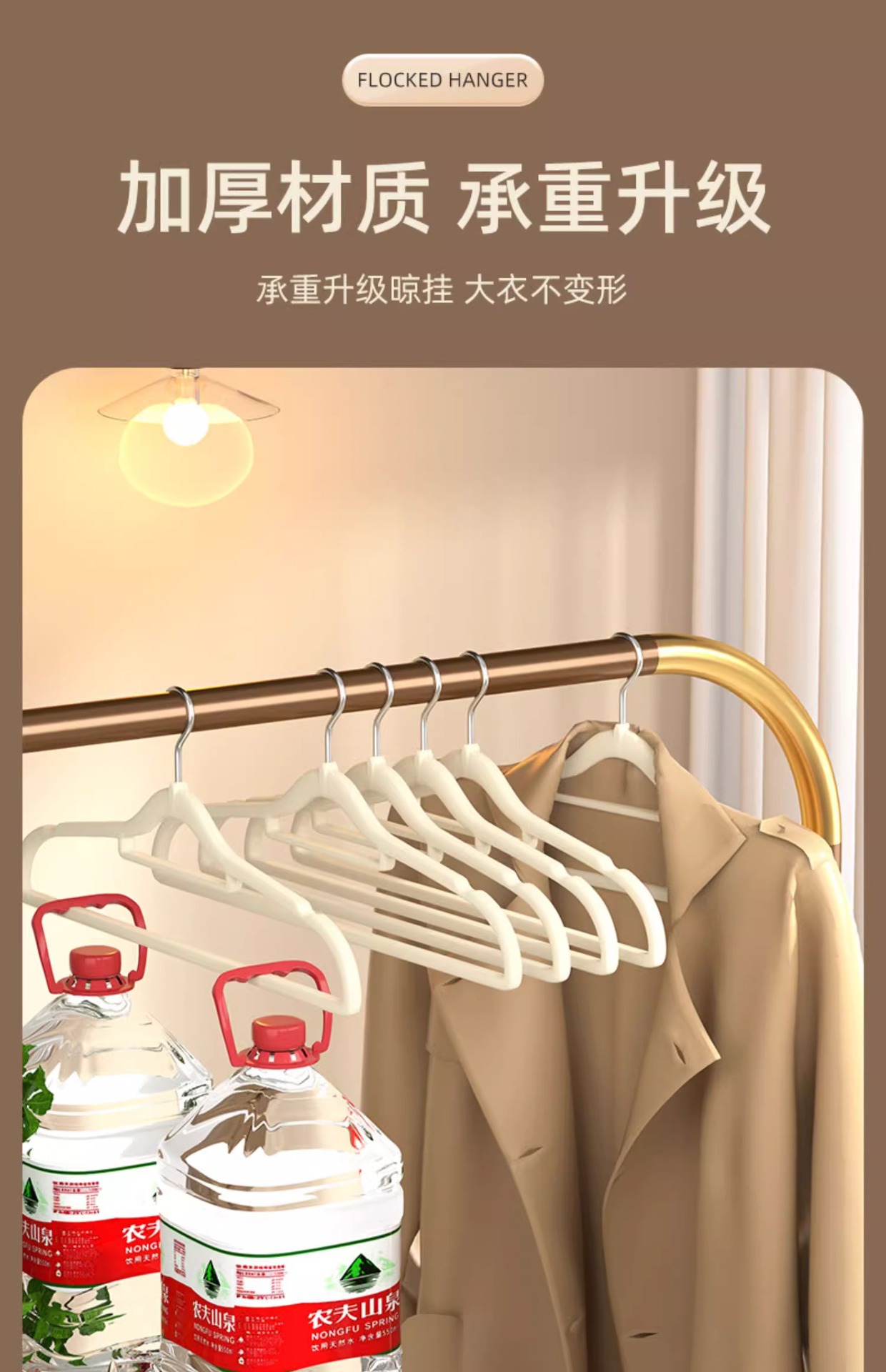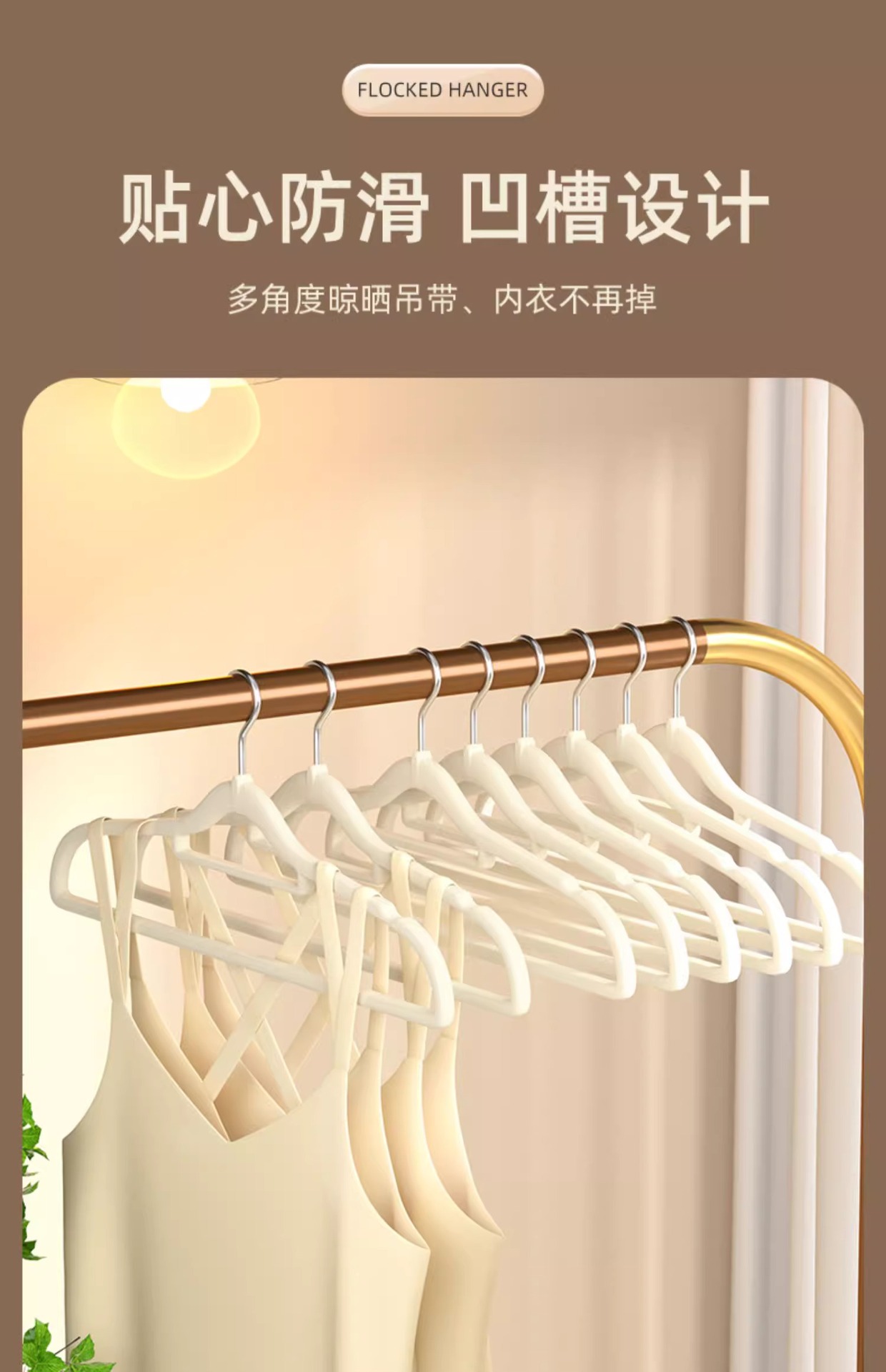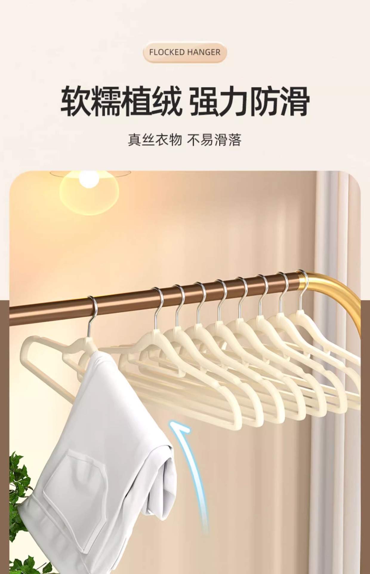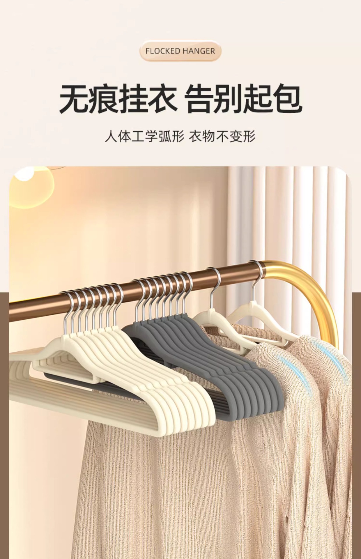 Flocado estante de ropa al por mayor posición colgante flocado percha de ropa Exportación de comercio exterior sin costura flocado percha de ropa