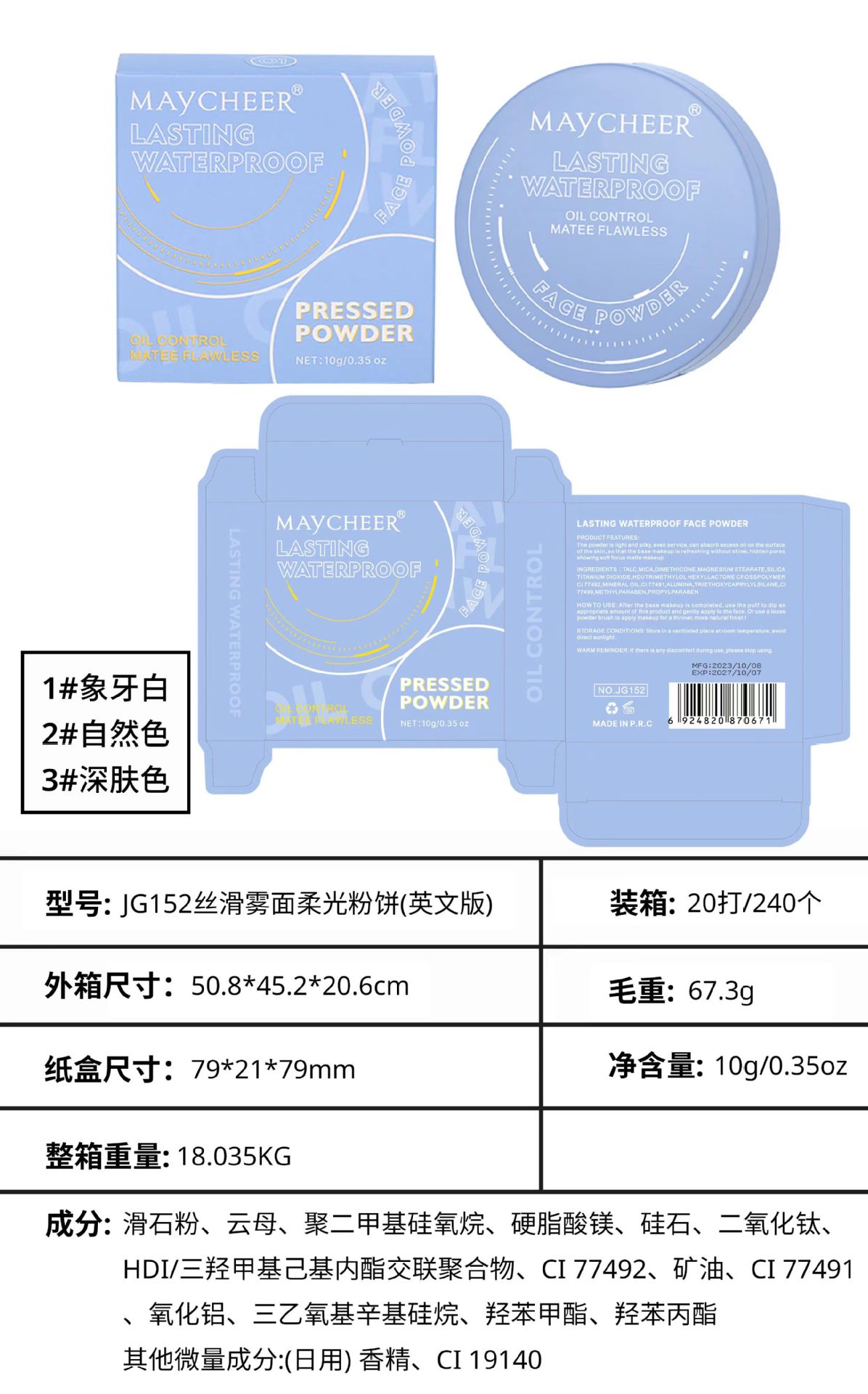 | Nombre del producto | Maycheer meixier reparación facial y pasteles impermeables |