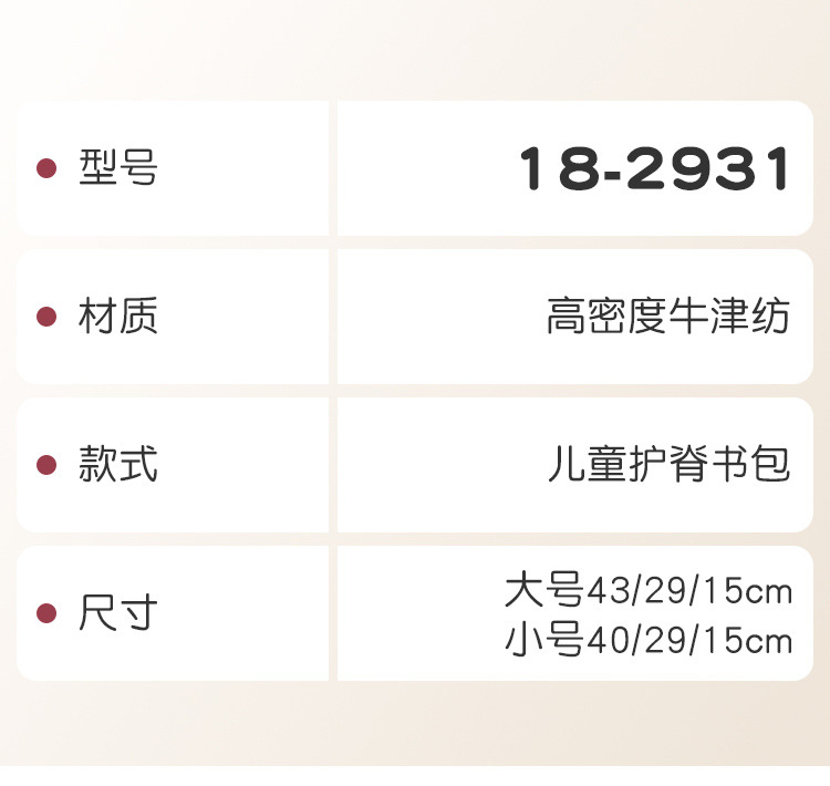 | 5-6 Niños de grado doble hombro | 3-4 Grado nuevo paquete de protección de espalda |