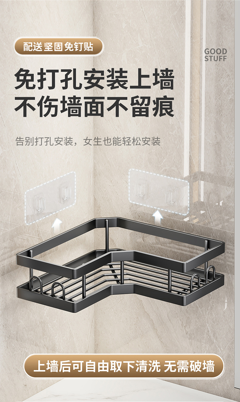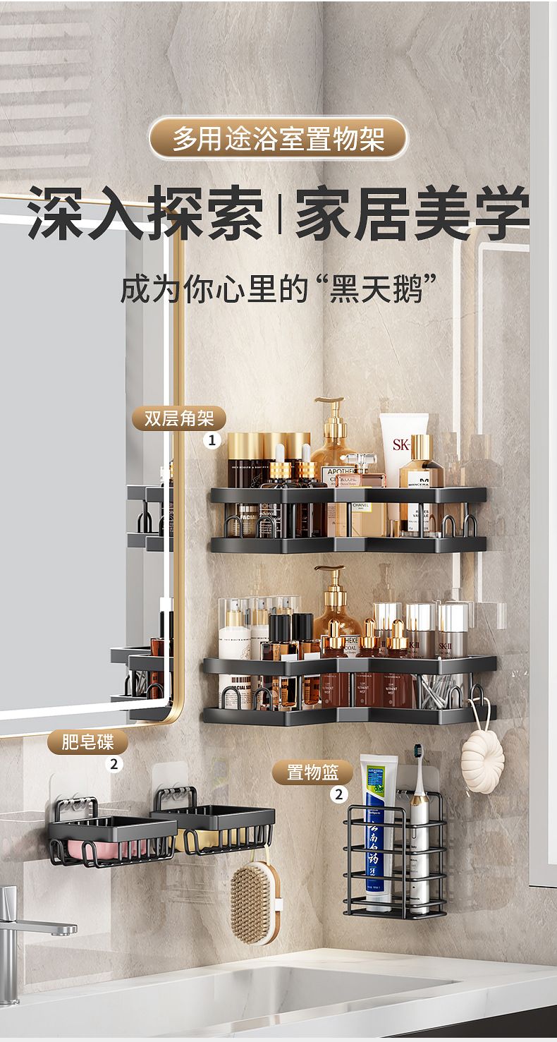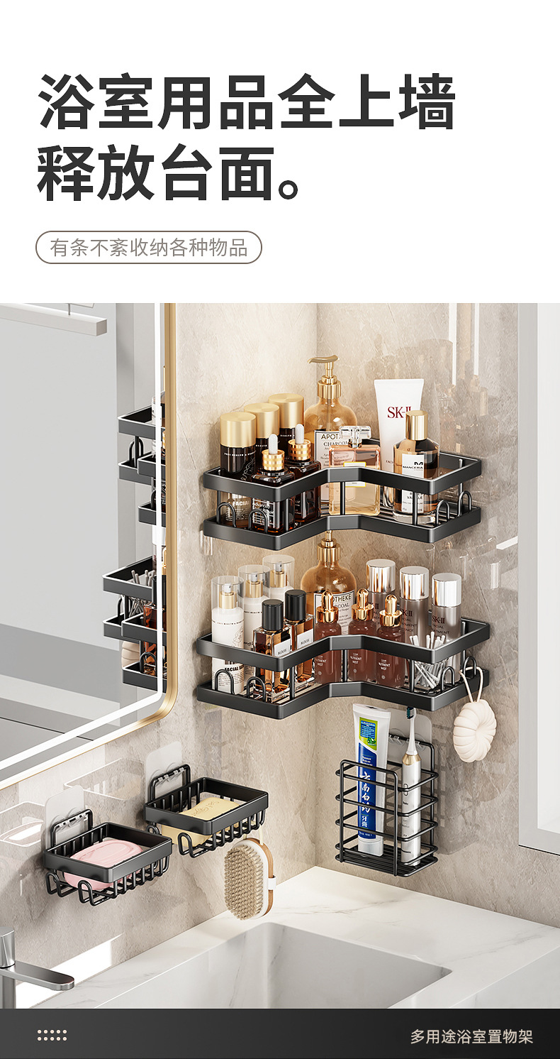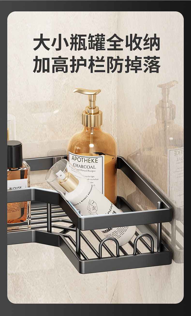 | Número de artículo | Estante de esquina de baño sin perforación Estante de esquina Estante de almacenamiento montado en la pared Gel de baño Cesta de almacenamiento al por mayor |