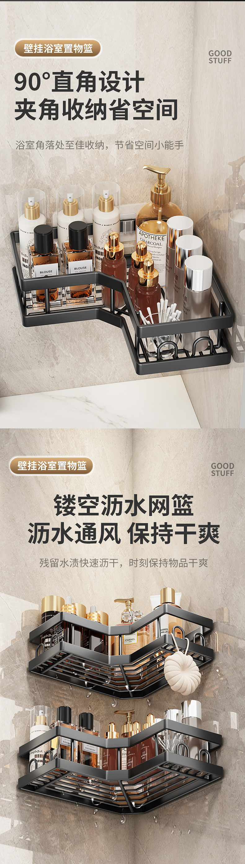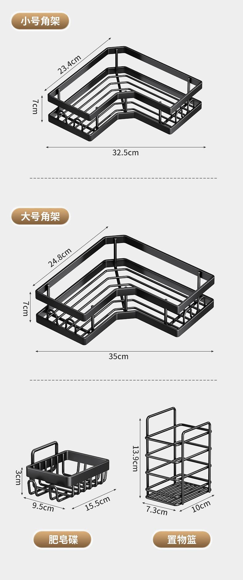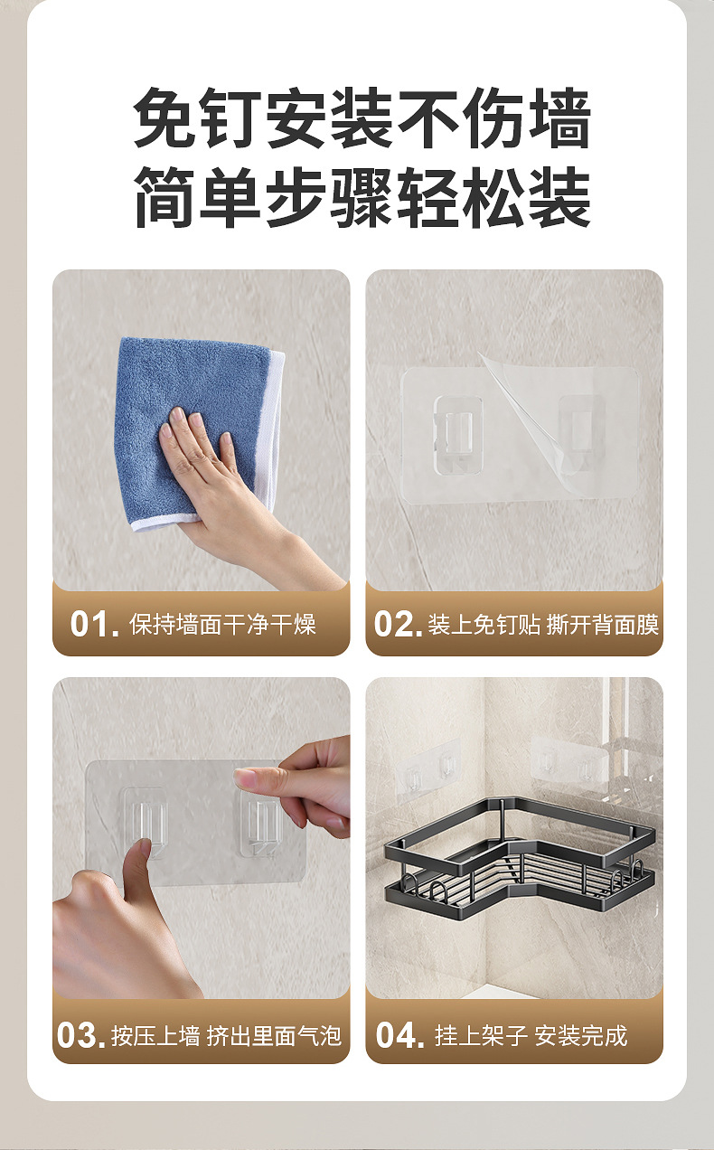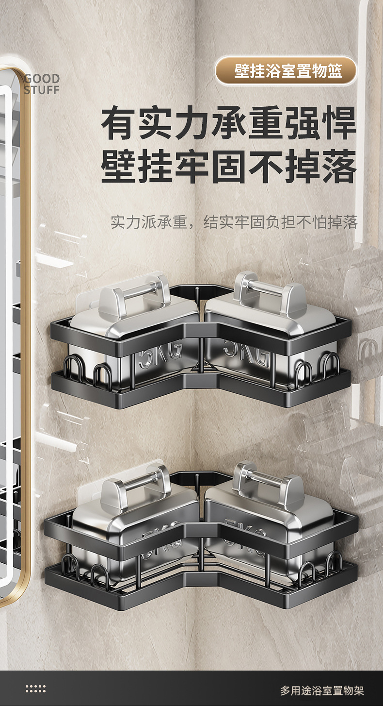 | Número de artículo | Estante de esquina de baño sin perforación Estante de esquina Estante de almacenamiento montado en la pared Gel de baño Cesta de almacenamiento al por mayor |