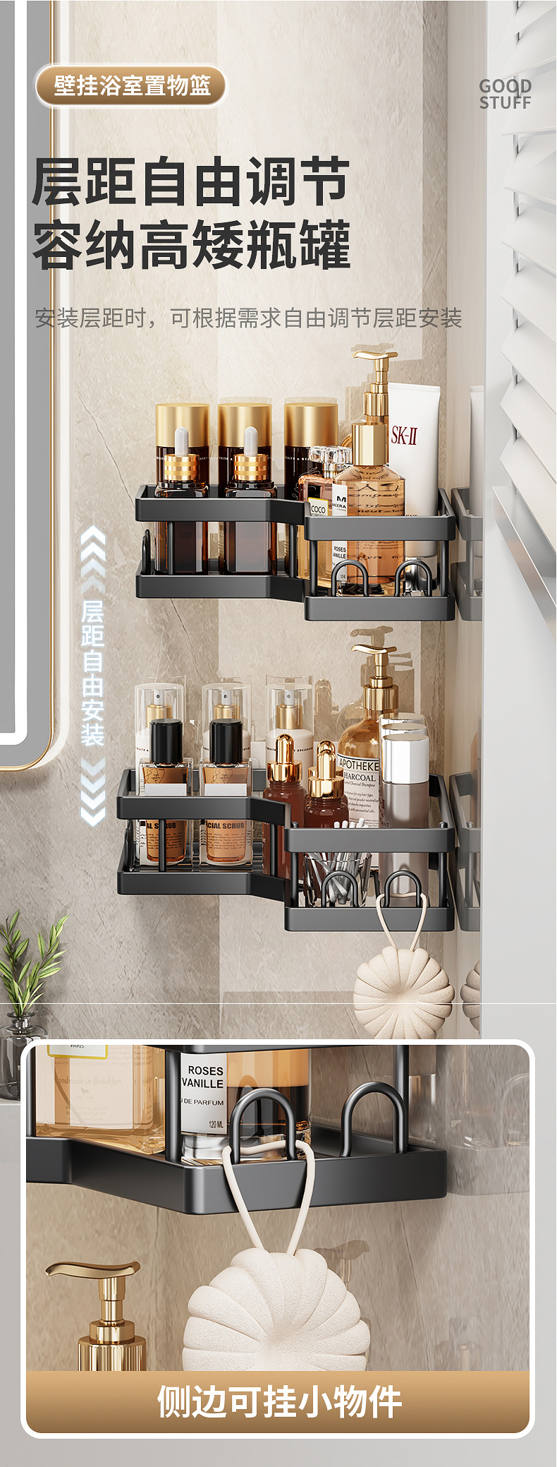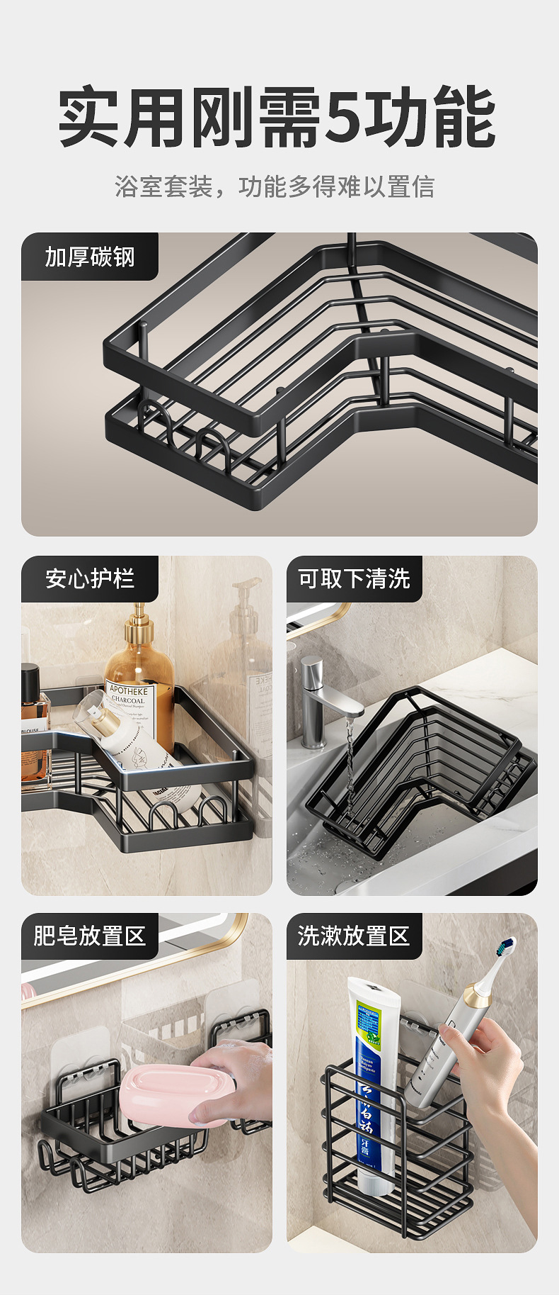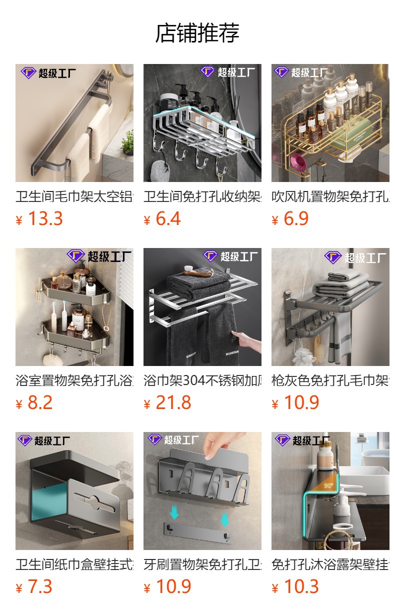 | Propiedades similares | Estante de baño sin perforación Estante de esquina de baño Baño de baño Estante de almacenamiento multicapa en la pared |