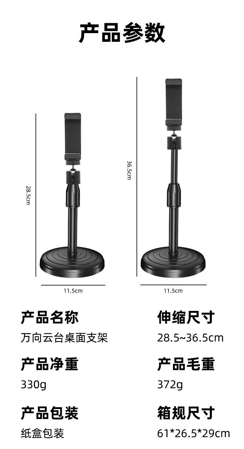 | Colores | [Soporte de escritorio Wanxiang PTZ] (varilla de plástico con clip de una palabra),[Soporte de escritorio Wanxiang PTZ] (varilla de metal con clip de una palabra),[Soporte de escritorio Wanxiang PTZ] (el poste de plástico no contiene un clip de una palabra),[Soporte de micrófono de escritorio]-Estilo de plástico (el embalaje de la caja de color es fácil de dañar),[Soporte de micrófono de escritorio]-Modelo de plástico (el embalaje de la caja del avión no es fácil de dañar),[Soporte de micrófono de escritorio]-Modelo de metal (el embalaje de la caja de color es fácil de dañar),[Soporte de micrófono de escritorio]-Modelo de metal (el empaque de la caja del avión no es fácil de dañar),[Soporte de disco] Tipo telescópico ABS,[Soporte de disco] Tipo telescópico de varilla de metal,[Soporte de disco] Manguera metálica tipo telescópico,[Soporte de disco] Tres posiciones de cámara,[Juego de cámara dual con lámpara de 6 pulgadas] (poste de plástico),[Juego de cámara dual con lámpara de 6 pulgadas] (poste de metal),[Luz de relleno de 10 pulgadas con tres posiciones] (poste de plástico),[Soporte de disco pequeño de metal] (varilla de metal),【Kit de toma aérea】(Incluye clip para teléfono y cardán),[Soporte Cantilever A116] (Clip para Teléfono Móvil),[Soporte voladizo A116] (Abrazadera para tableta),【Soporte de Escritorio para Teléfono con Base Superior】 (Modelo A - Base Ponderada, Disparo Superior - 3 Secciones),[Soporte de escritorio] (El tipo B no se puede fotografiar desde arriba - dos secciones),【Soporte para teléfono de brazo】(montaje de disco de 25 mm) |