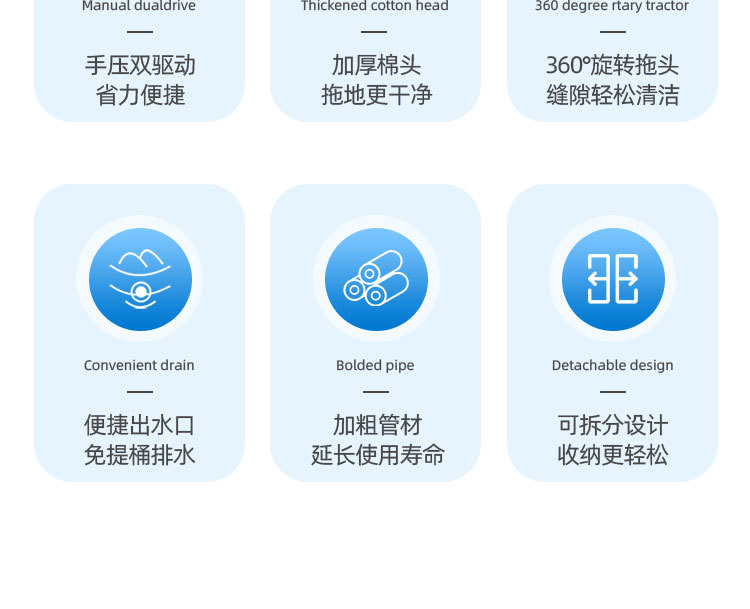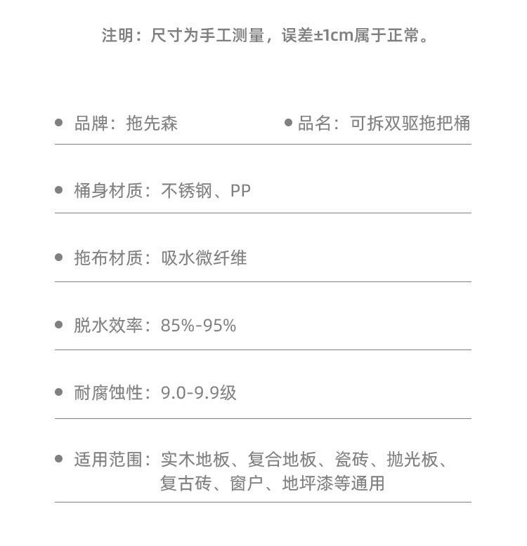 | Especificaciones | Paño de reemplazo,Cubo de fregona + disco + 2 paños de algodón + palo de tres secciones,Cubo de fregona + disco + 4 paños de algodón + palo de tres secciones,Cubo de fregona + disco + 6 paños de algodón + palo de tres secciones |