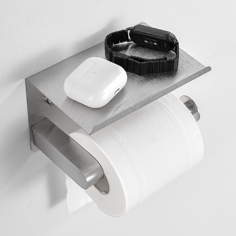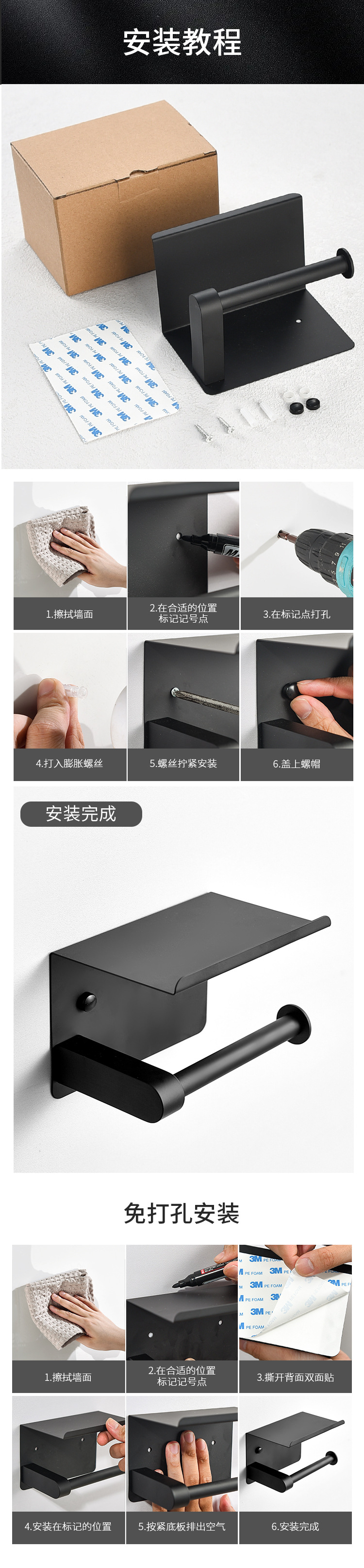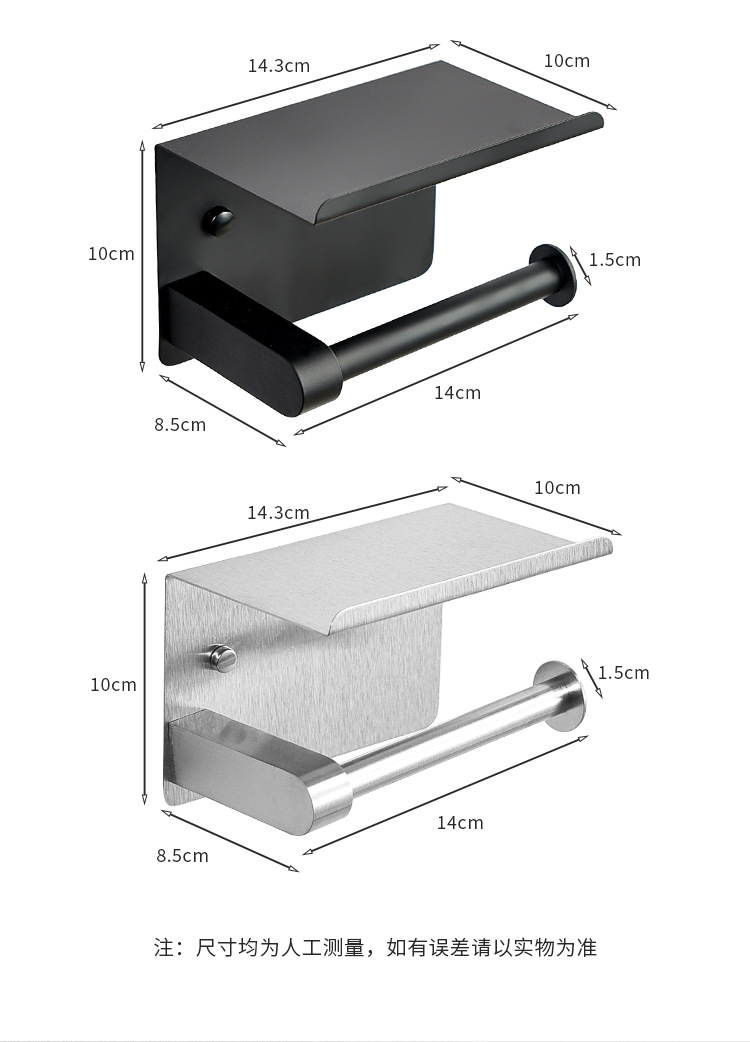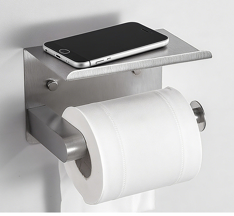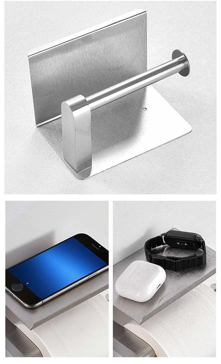 Caja de toallas perforadas de acero inoxidable sin perforación estante de papel de rollo de baño ingeniería de pared caja de papel de rollo de estante de almacenamiento de teléfonos móviles