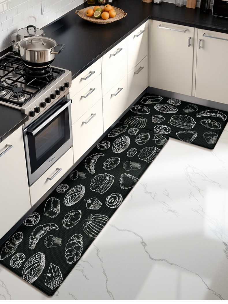 Textiles domésticos transfronterizos cocina alfombra de suelo a prueba de aceite impermeable limpio alfombra de pies gruesa anti-fatiga alfombra de cabello