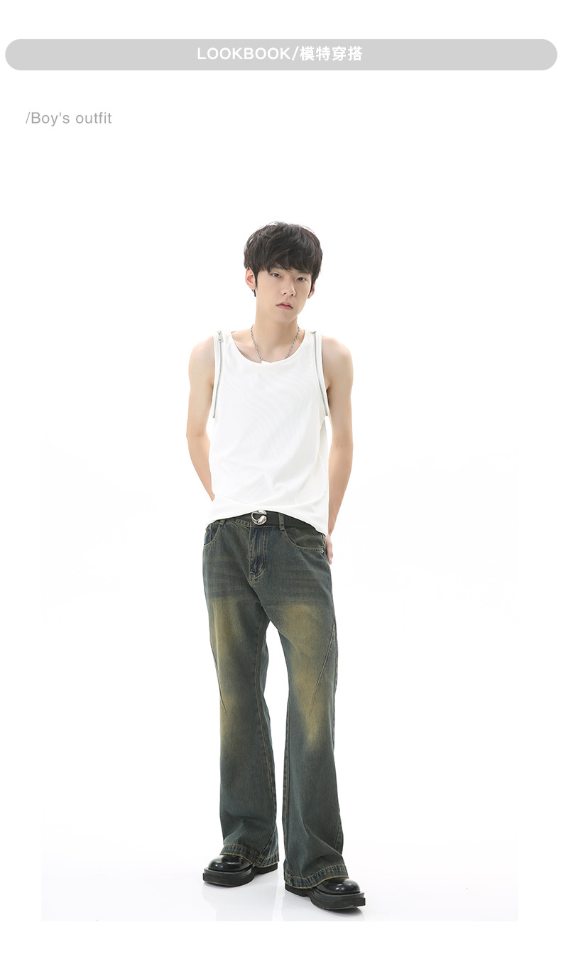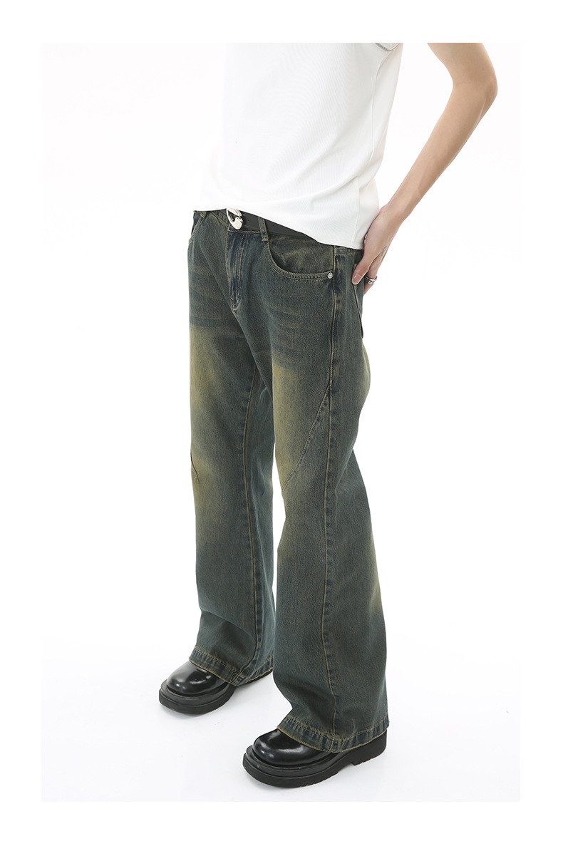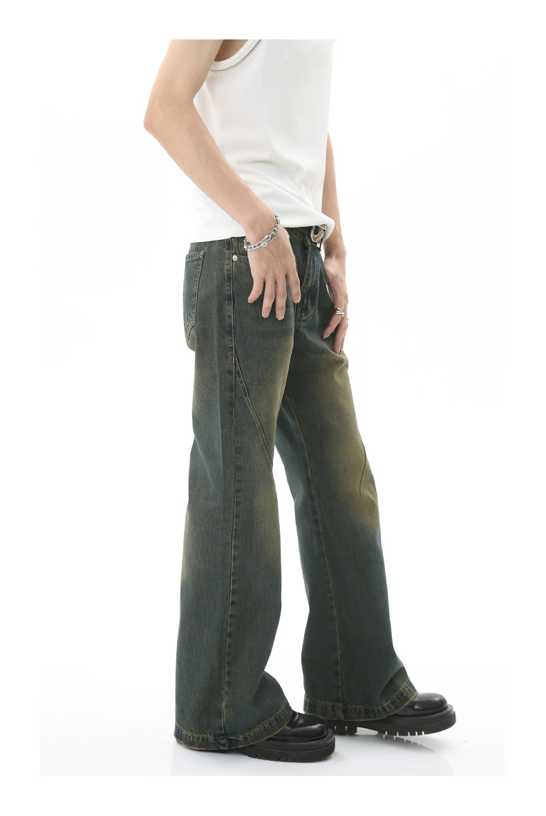 American High Street moda nacional micro Flared jeans hombres 2023 primavera y otoño ins suelta recta Vibe pantalones largos moda