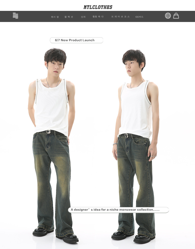 Mtlclothes ropa de Hombre | 2023 verano nuevo estilo coreano pierna ancha floja drapeado MOP retro jeans