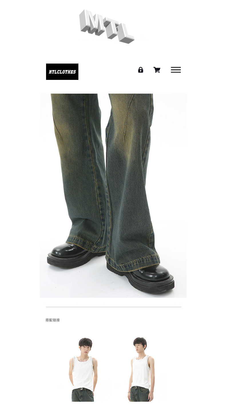MTLCLOTHES Hombres| Retro americano hecho viejos colores de polvo personalidad de moda micro lavado jeans casuales moda