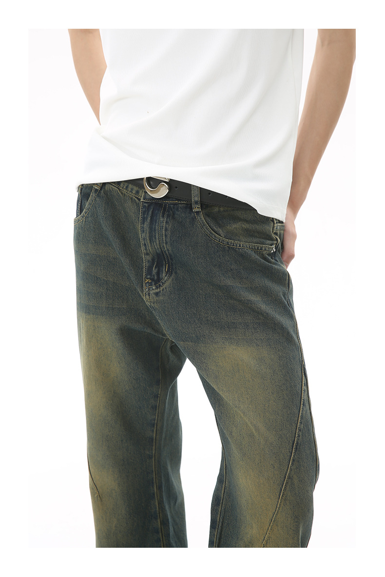 EF Denim | 2023 nuevos pantalones lavados retro rectos de pierna ancha pantalones de mezclilla sueltos hombres a juego