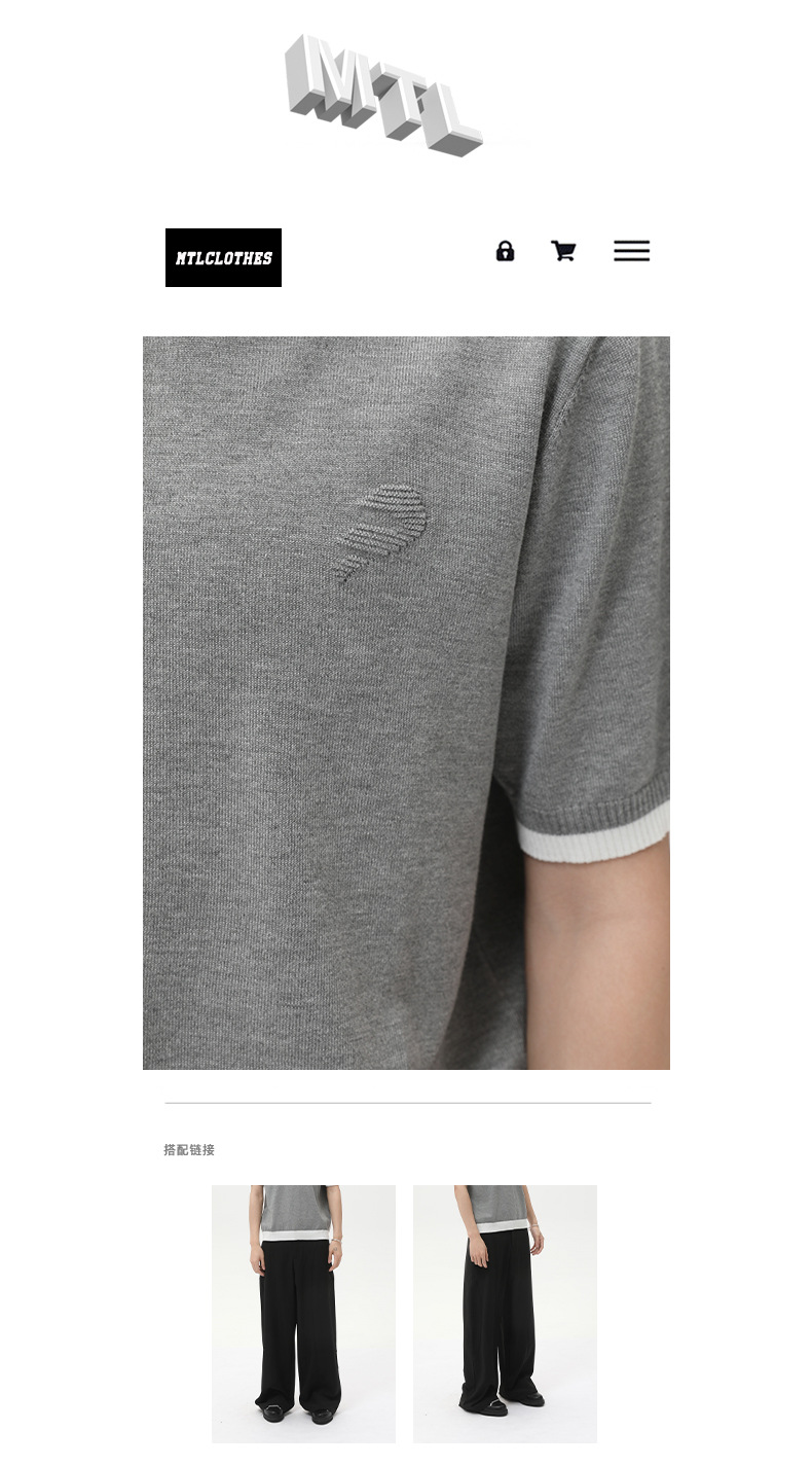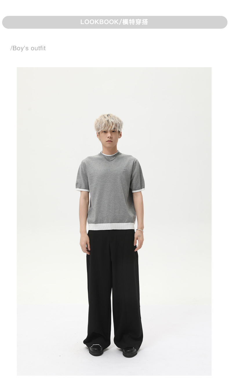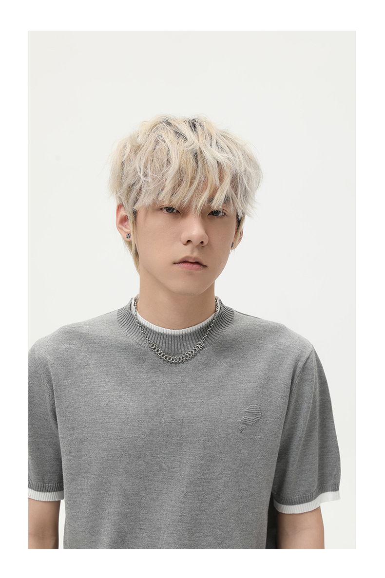MTLCLOTHES para hombre | Estilo coreano de punto de cuello redondo falso de dos piezas a juego de color corto casual camiseta de manga corta todo fósforo