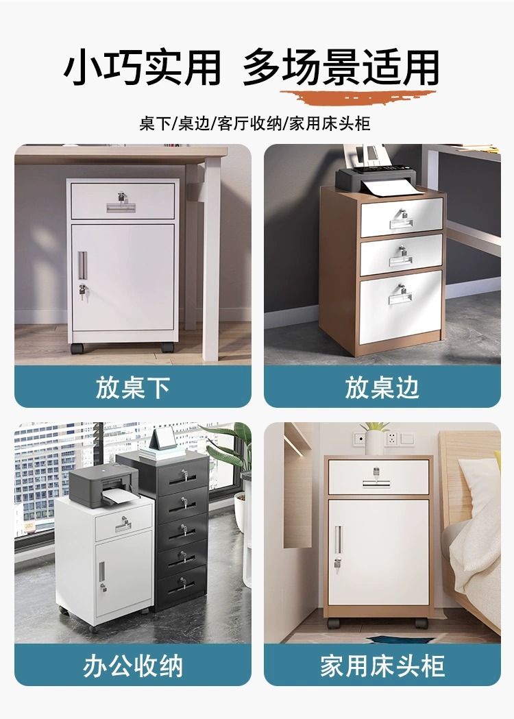 办公矮柜桌下文件档案收纳柜密码锁资料抽屉柜打印机柜铁皮小柜子