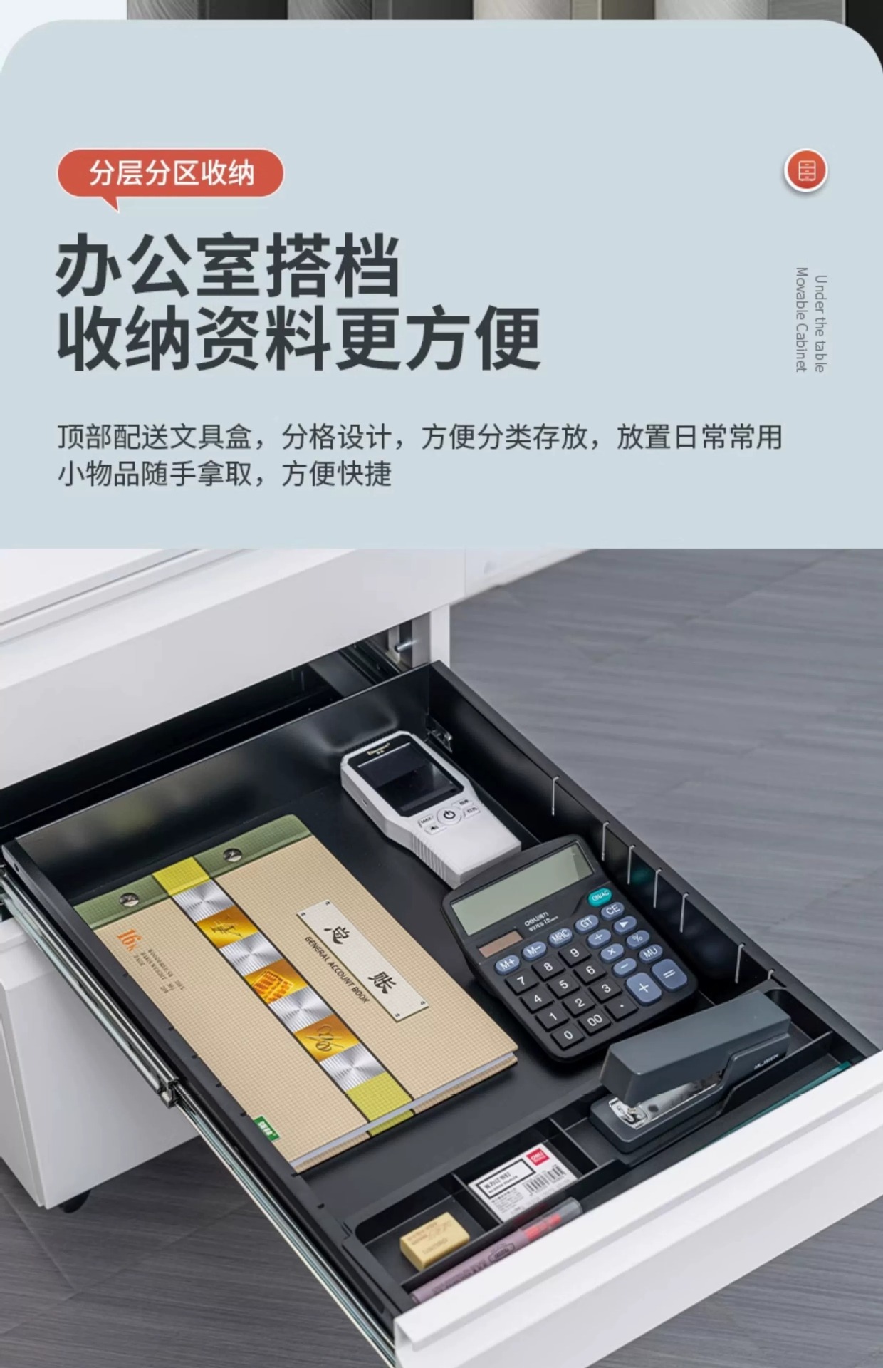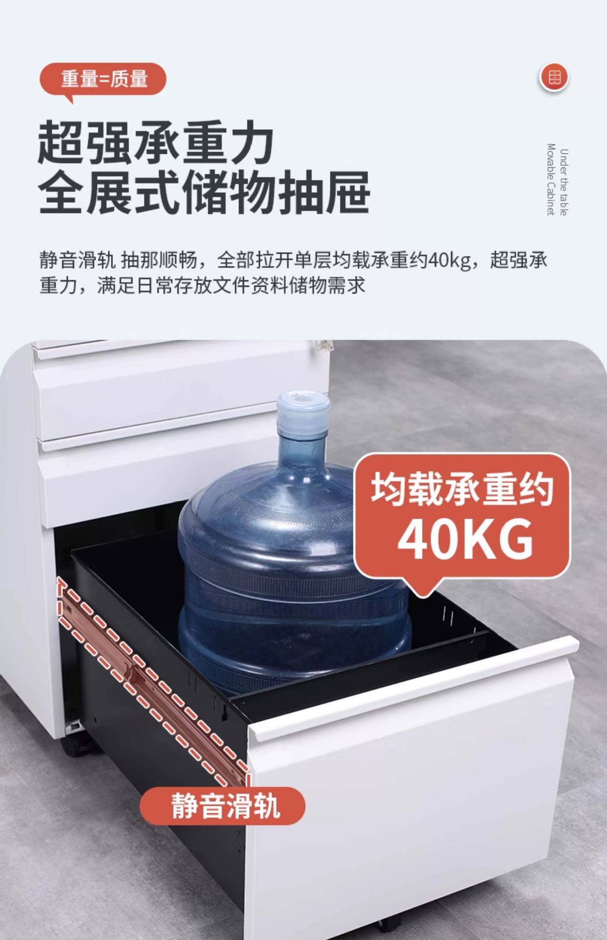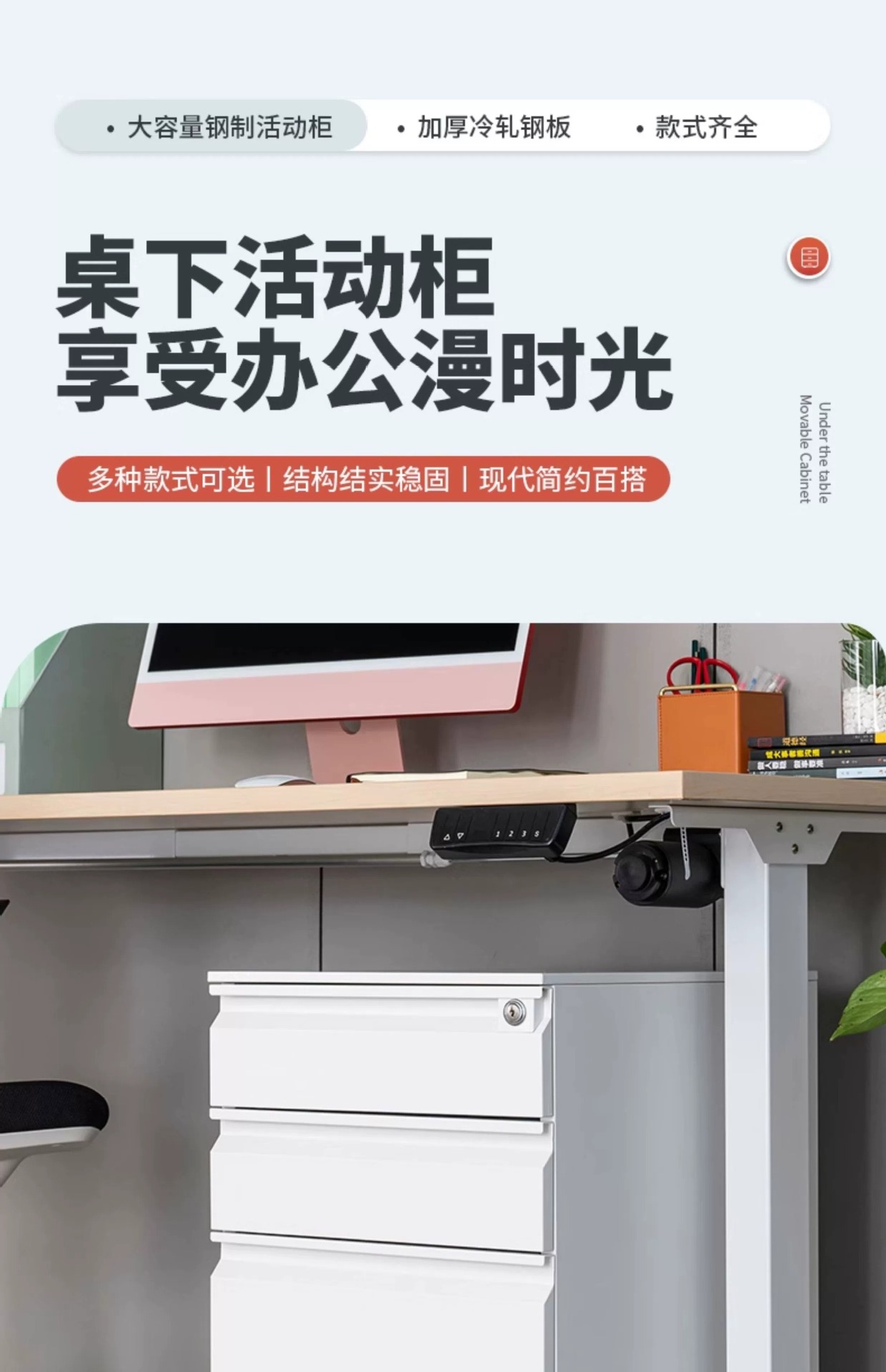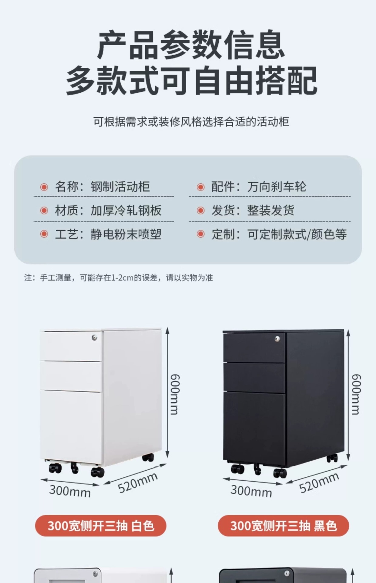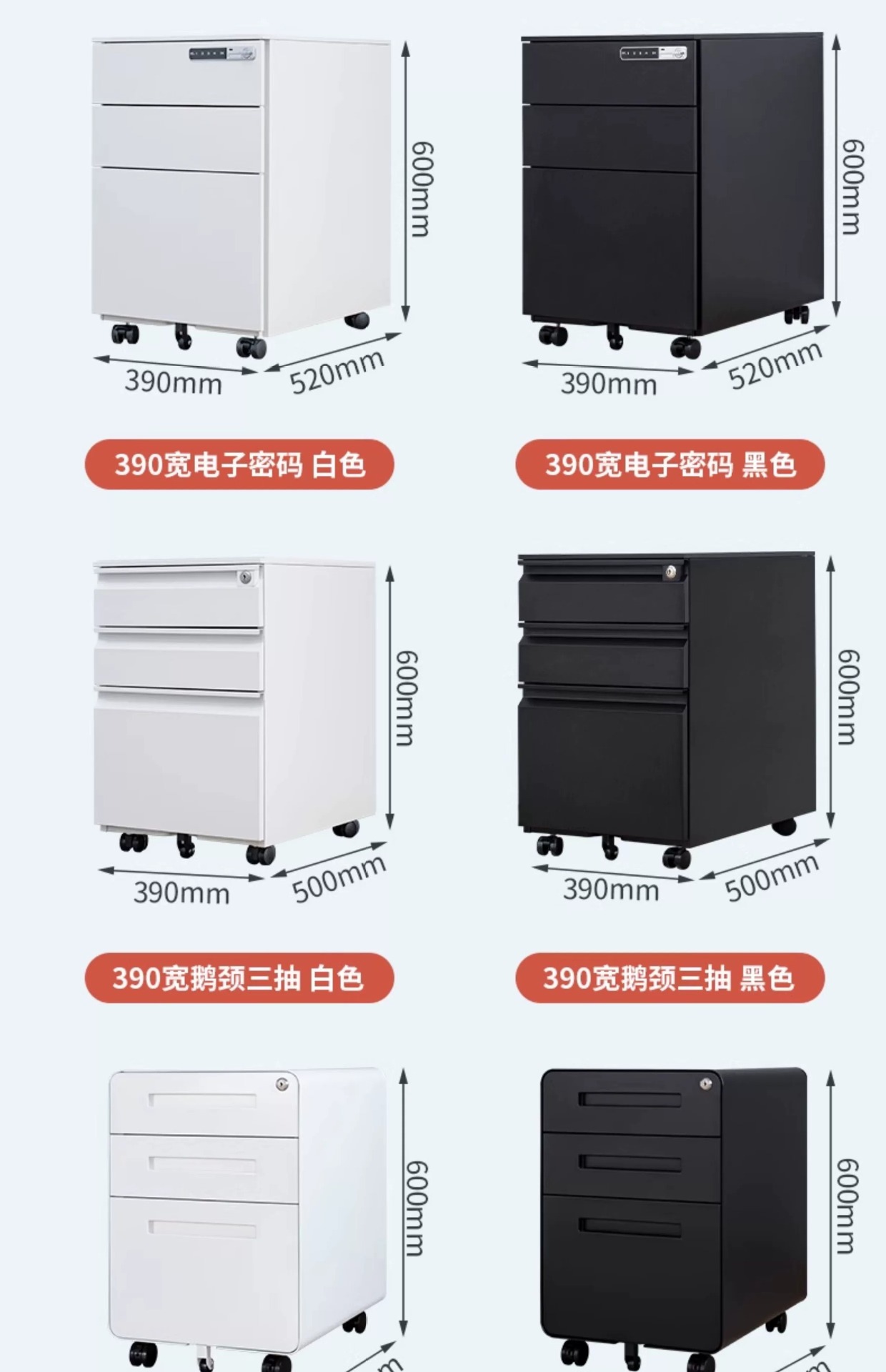 办公活动柜桌下档案资料矮柜密码带锁储物柜三抽带轮子铁皮文件柜